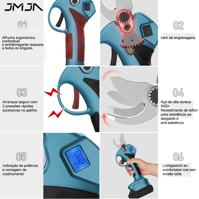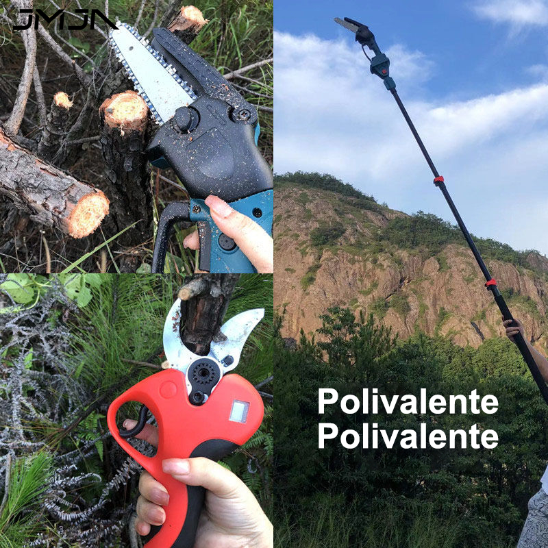 JMJN Podador Elétrico 3 em 1 com Bateria – Motosserra Portátil, Tesoura de Poda e Extensor Telescópico para Jardim
