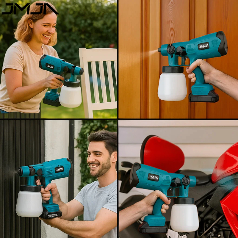 JMJN Pistola de Pintura 48V Sem Fio – Pulverizador Elétrico Portátil com 2 Baterias, Carregador, Funil e Copo de 1000ml