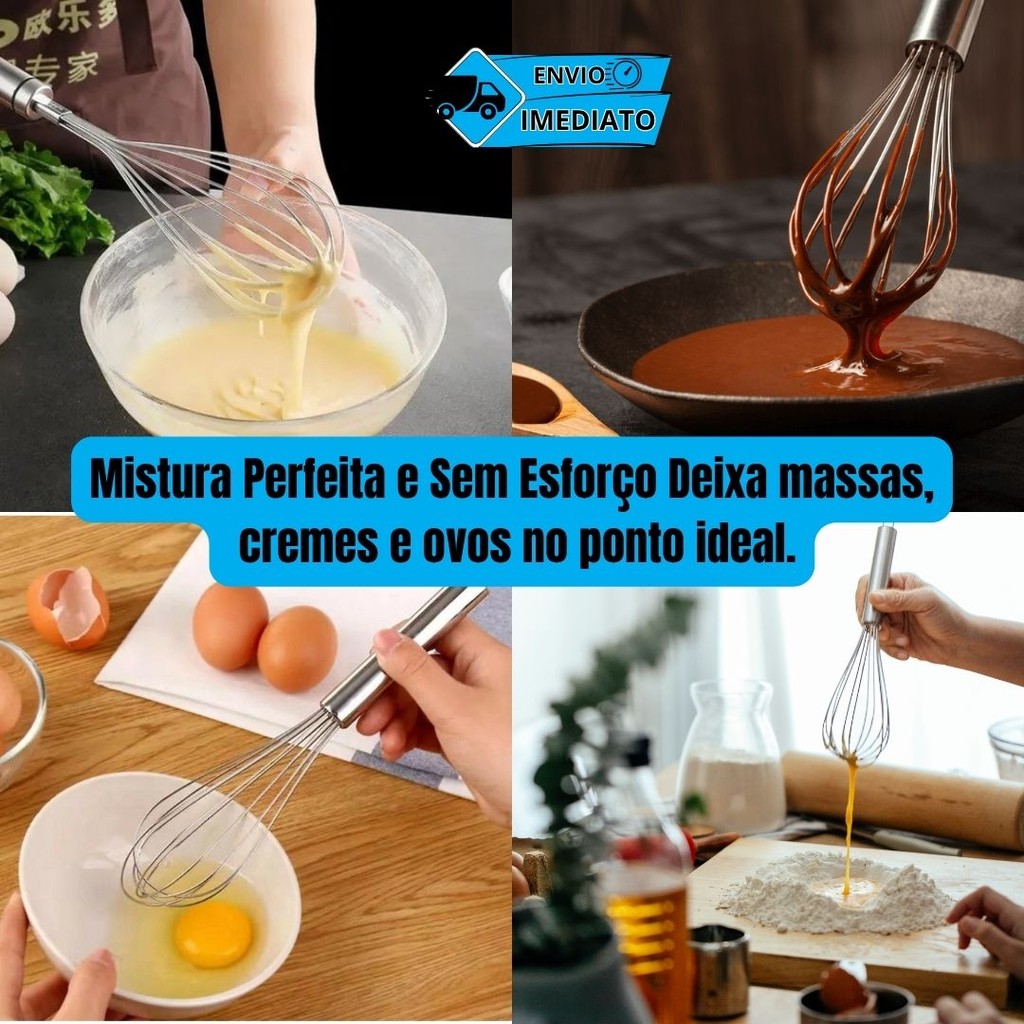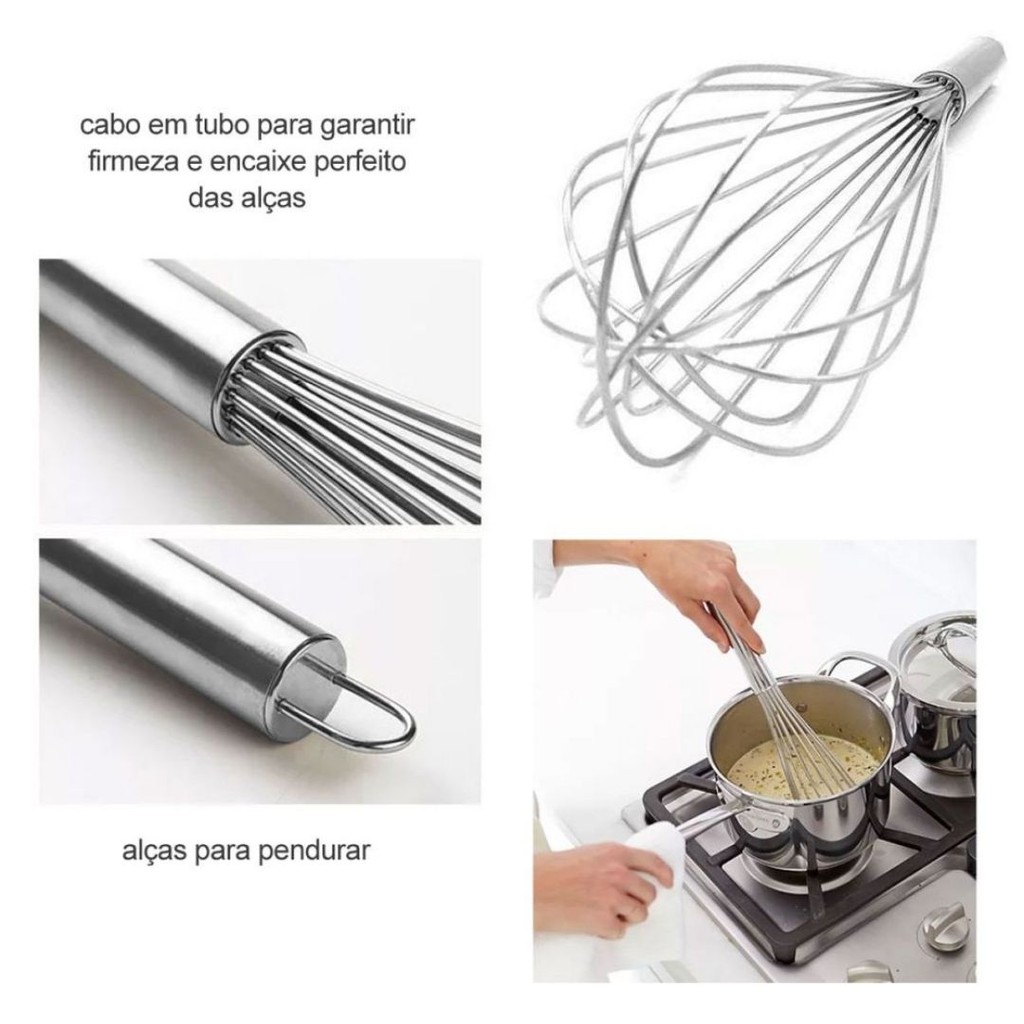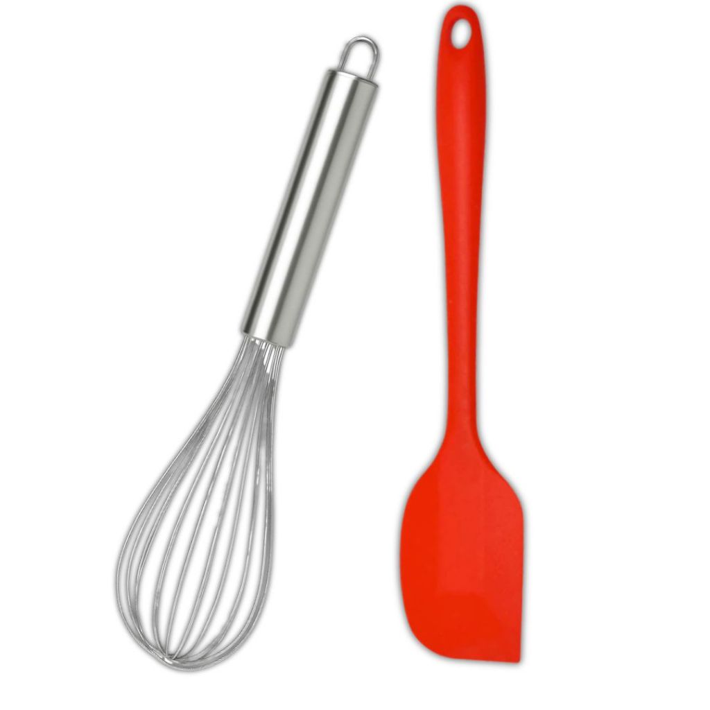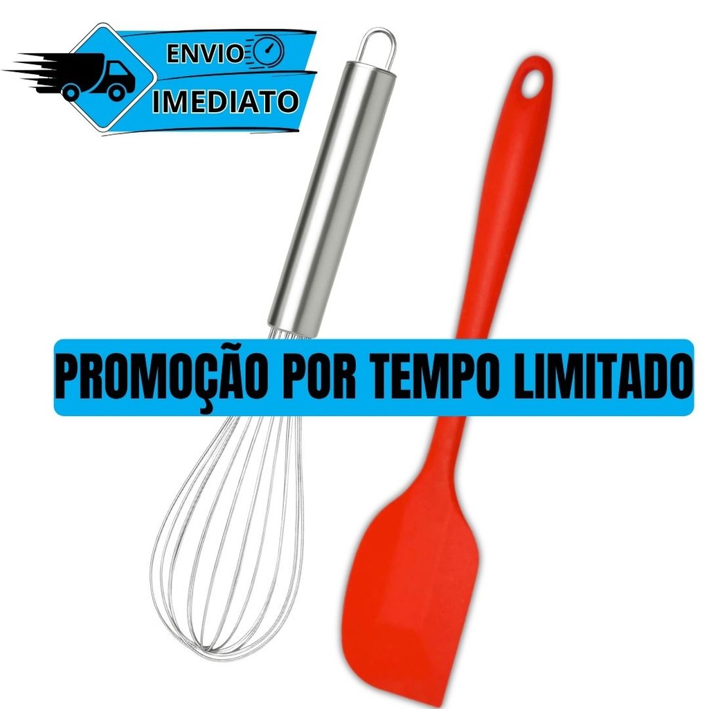 Kit Espátula Pão Duro Silicone + Fouet Batedor Inox | Utensílios Cozinha Confeitaria
