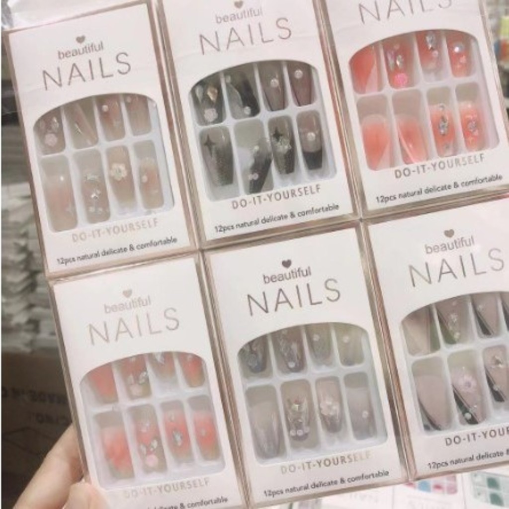 KIT 24/48/72 Unhas C/Cola Postiça Decorada Glitter Bailarina Quadrada Amendoada Francesinha Pintada Unha