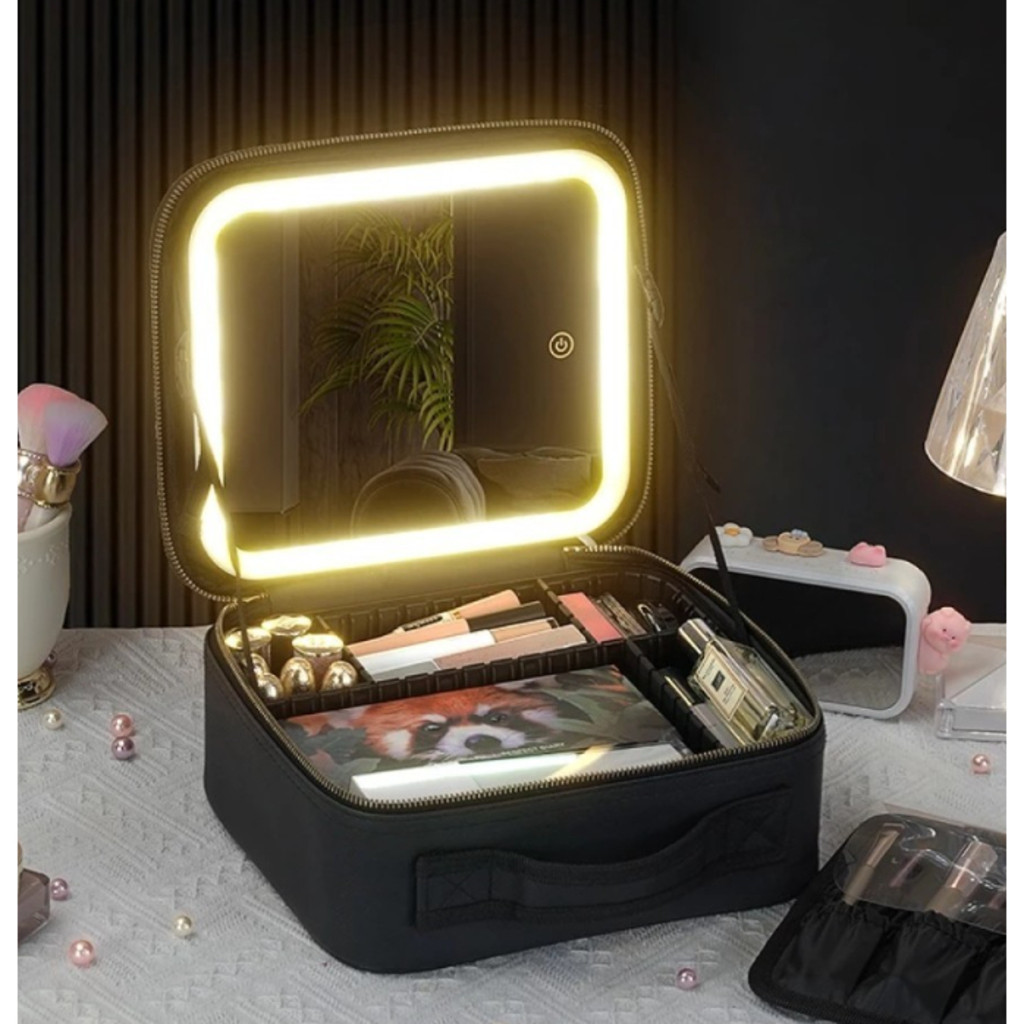 Kit Maleta Maquiagem completo Profissional Com Espelho e Luz Led e paleta de maquiagem