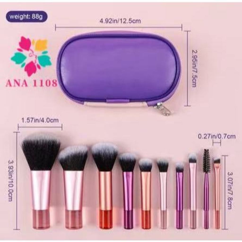 Kit 10 mini pincéis para Maquiagem com estojo bolsa para viagem-312-097