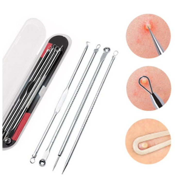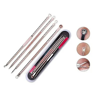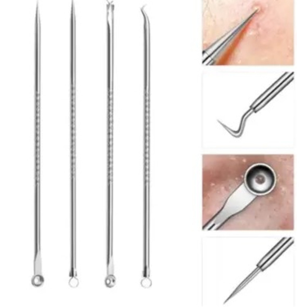 Conjunto com 4unidades de Ferramentas de Beleza Extrator De Acne Removedor De Cravo Espinha Aço Inoxidável