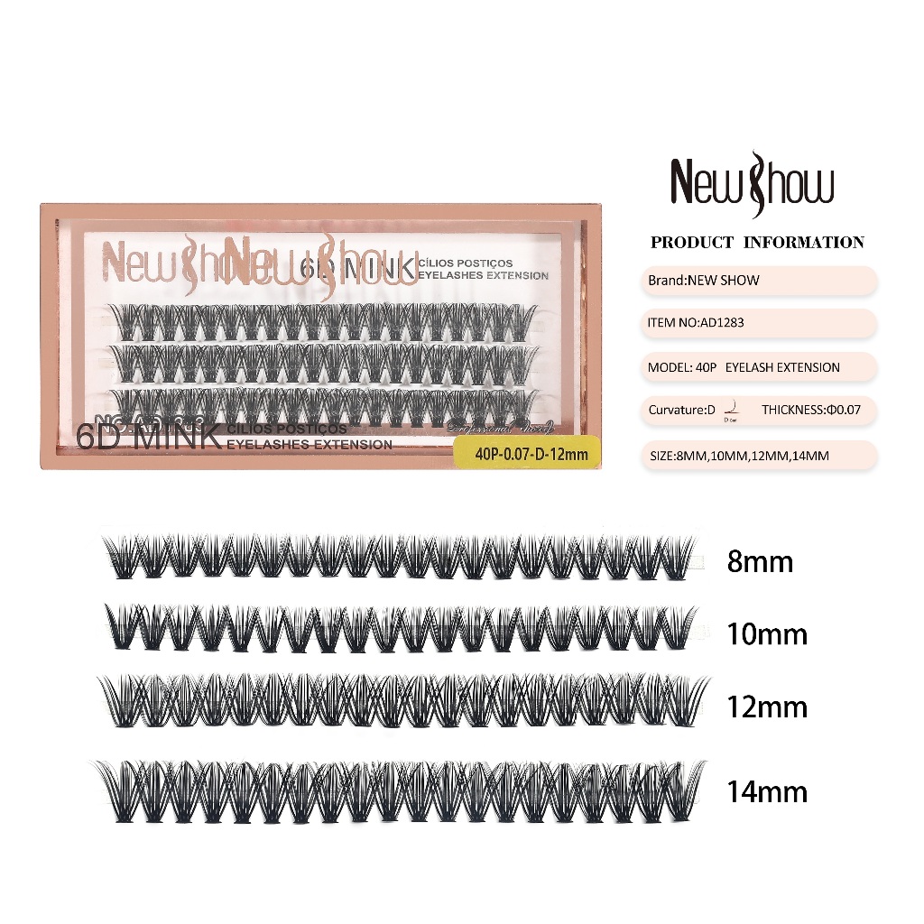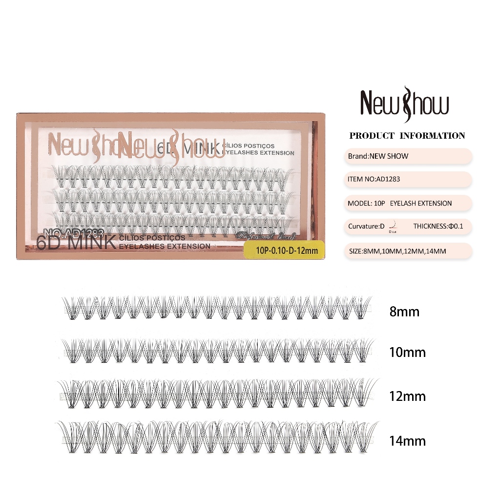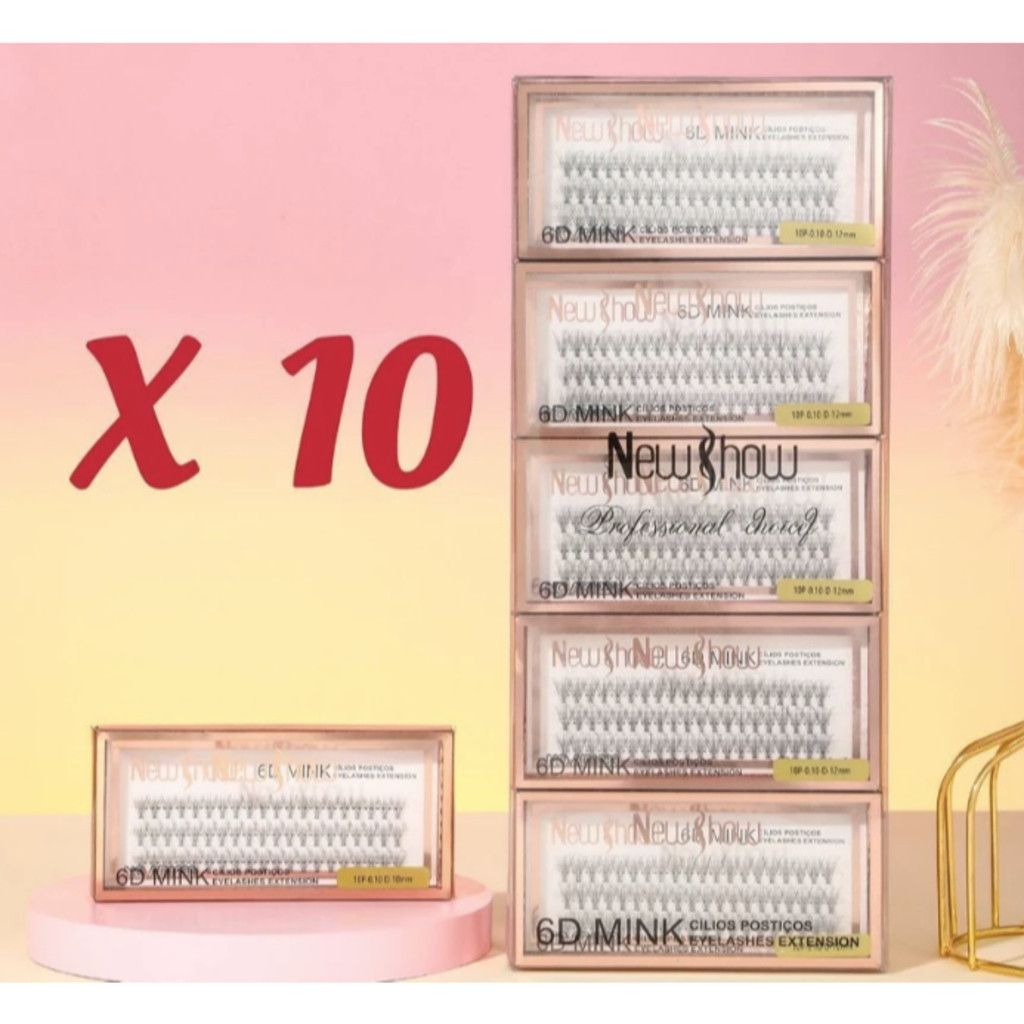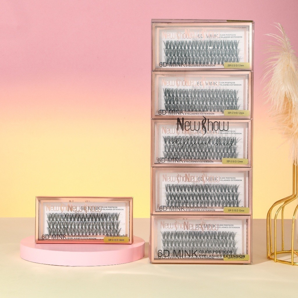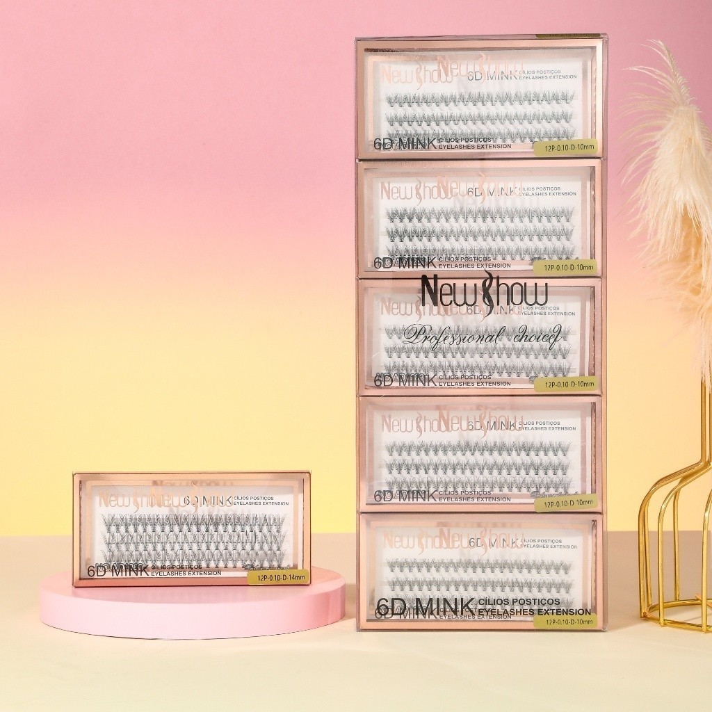 New Show KIT 10 Caixas Cílios Postiços 6D MINK-10P/20P/30P/40P - Tufos sem Nó