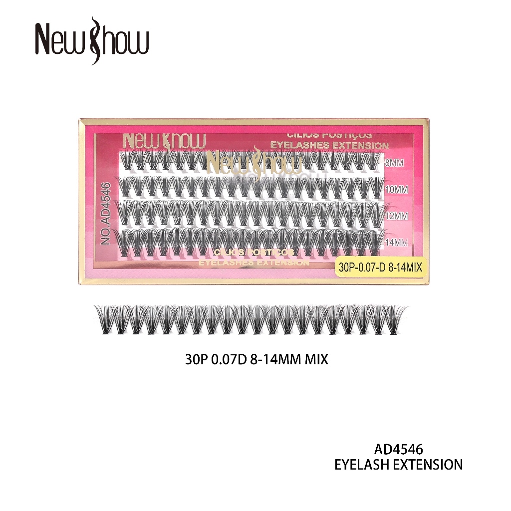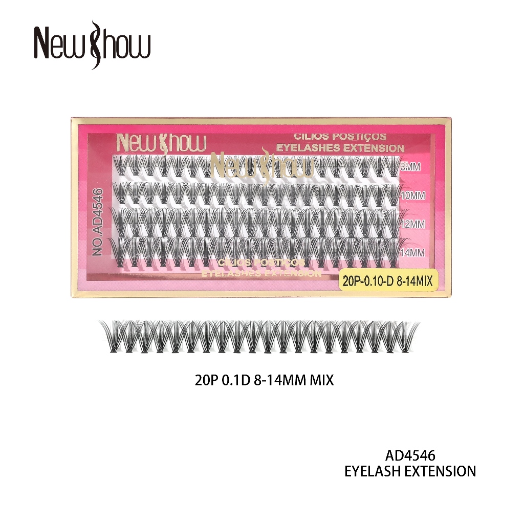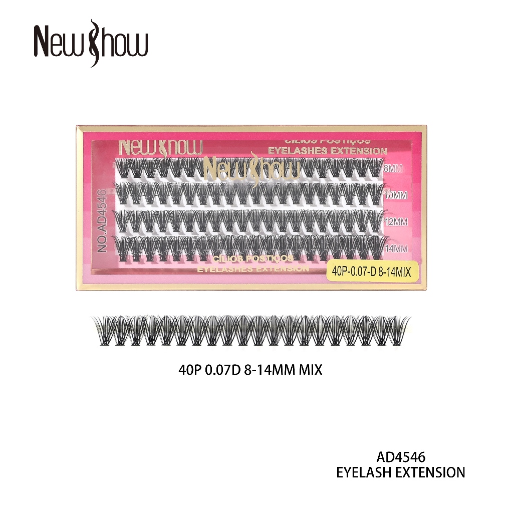 New Show 80 Unidades Números mistos Cílios Postiços 6D MINK 20P/30P/40P-0.07-D 8-14MIX-Tufos sem Nó