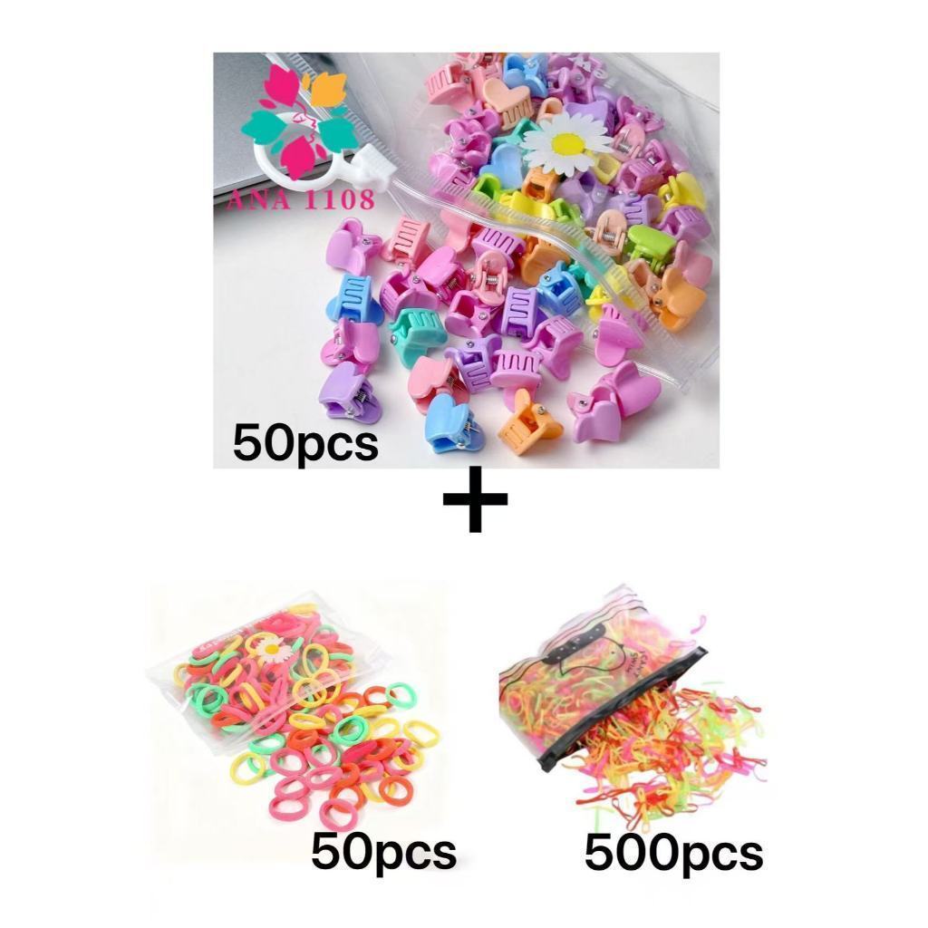 ANA1108 Kit 500 Elastico de cabelo+50 peças Mini Rabicó Xuxinha+50 unidades Mini presilha de cabelo infantil Com Bolsa