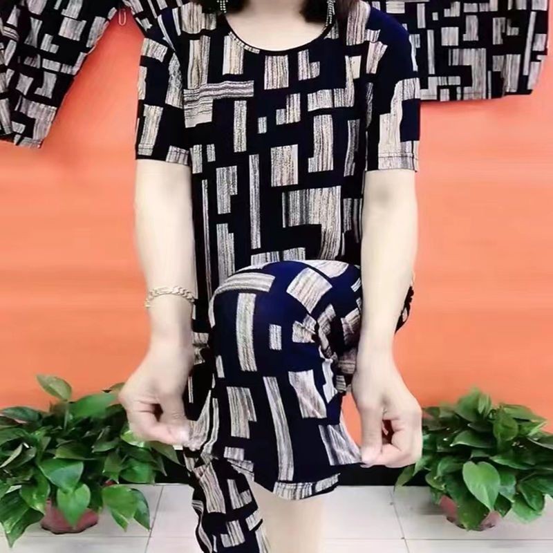 Casual mãe terno de seda gelo verão outono moda terno de duas peças com bolsos capa carne Plus Size roupas femininas