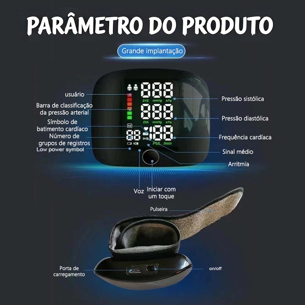 Monitor De Pressão Arterial De Pulso Recarregável Alta BP Esfigmomanômetro