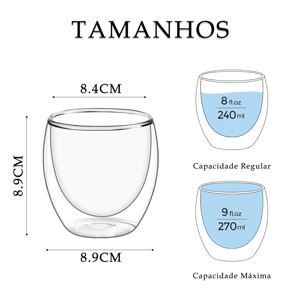 Kit 6 Copo Xícara Parede Dupla Vidro Café Shot Dose Moderno Chique Cantinho Café Escritório