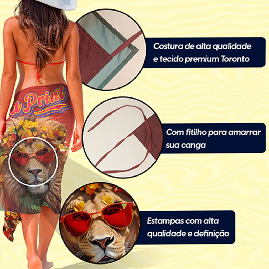 Canga/Pareô Praia e Piscina Branca 1,00x1,50m - Fera Print