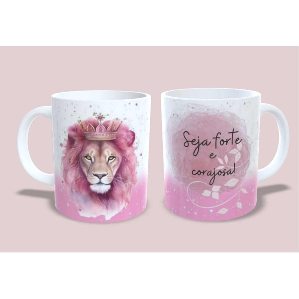 Caneca Evangélica - Leão Rosa Seja Forte E Corajosa.