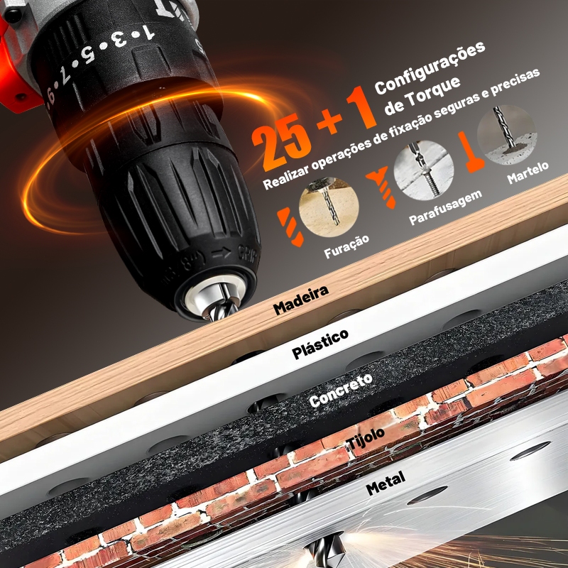 AUXOM Parafusadeira e Furadeira 21V 2 Baterias com 24 Bits - Maleta, Impacto, com motor 100% cobre