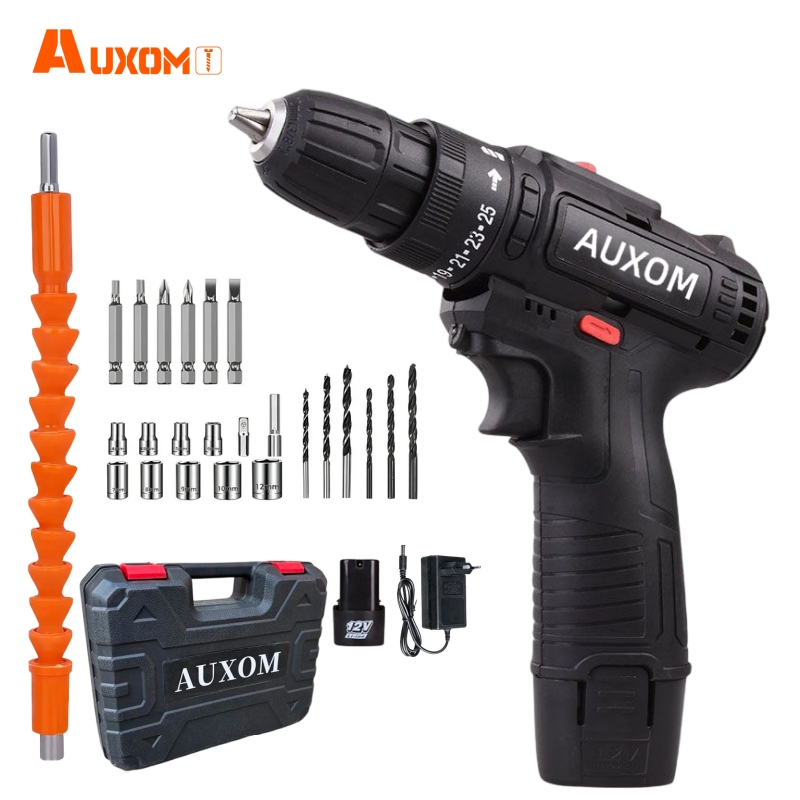 AUXOM Parafusadeira Furadeira Sem Fio 12V Com Maleta Brocas e Acessórios