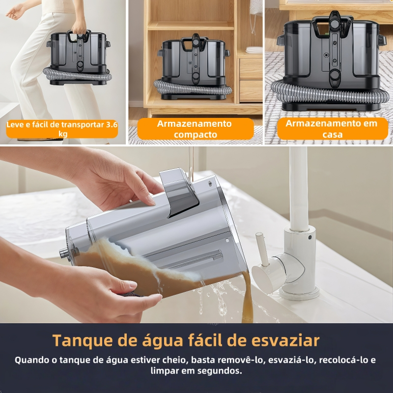 Extratora Higienizadora AUXOM Profissional 800W | Portátil Bivolt, Borrifa + Esfrega + Extrai (Colchão/Sofá)