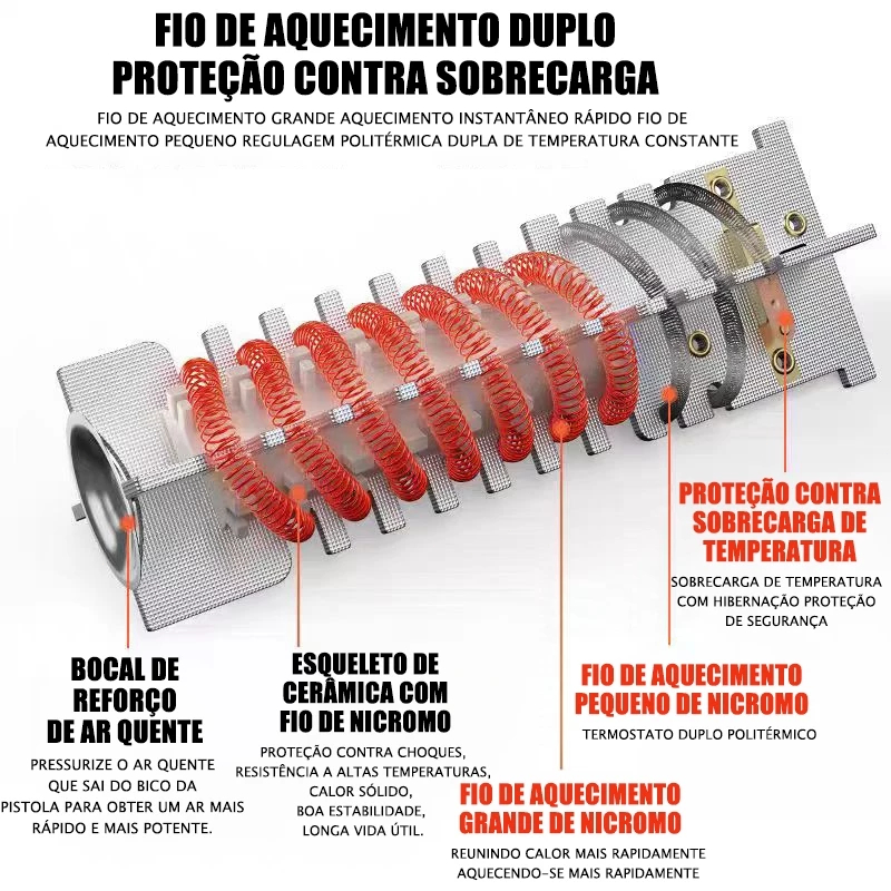 AUXOM Soprador Térmico 2000W 110V/220V - Pistola de Ar Quente 2 Velocidades com Temperatura Ajustável até 650°C