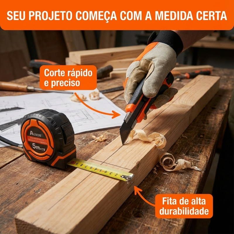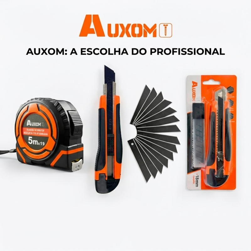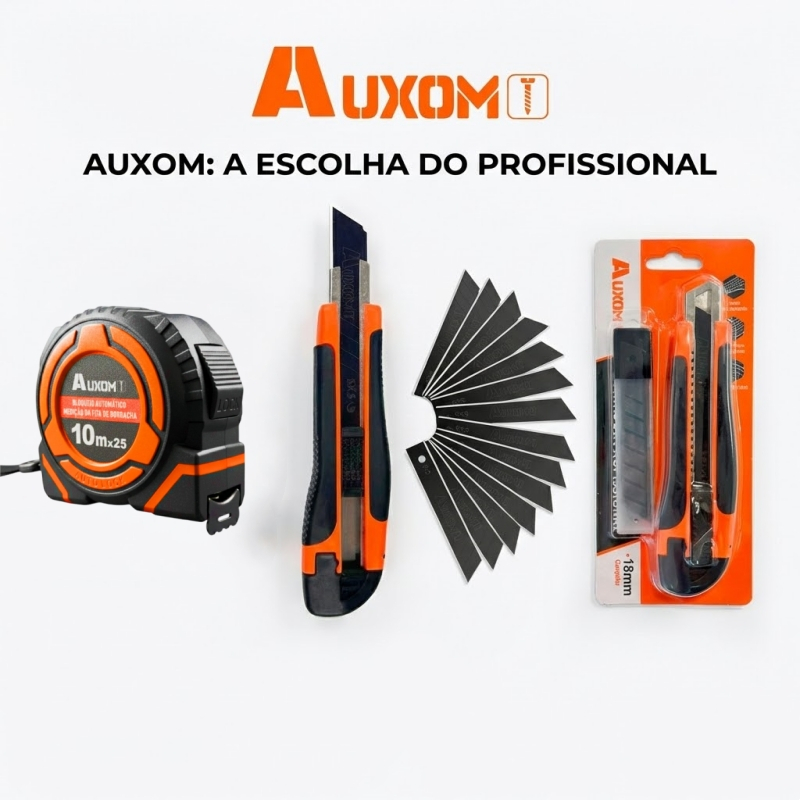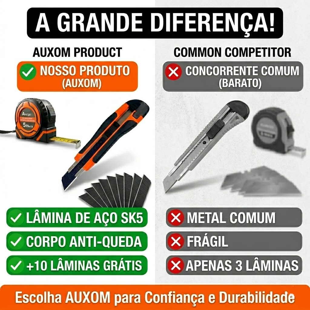 Kit Trena 5m e Estilete Profissional Emborrachado | 10 Lâminas SK5 Grátis - Alta Precisão e Trava Automática AUXOM