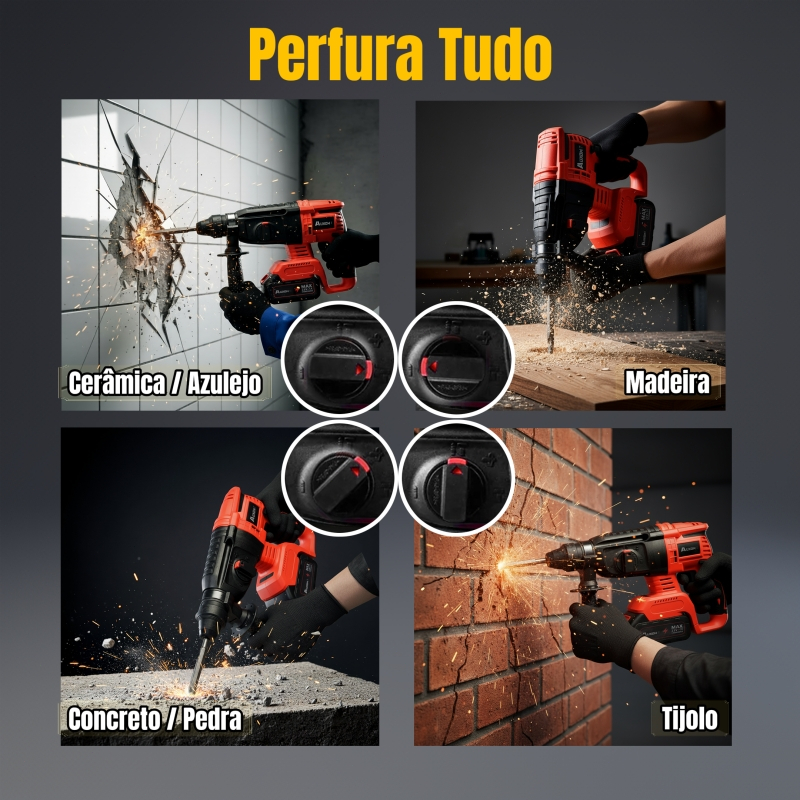 AUXOM Martelete Furadeira rompedor eletrico profissional 1350w Martelo de impacto Rompedor-2 Baterias