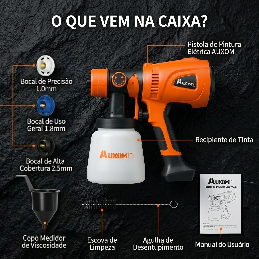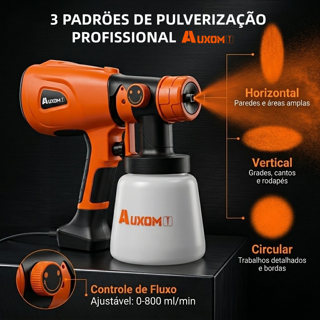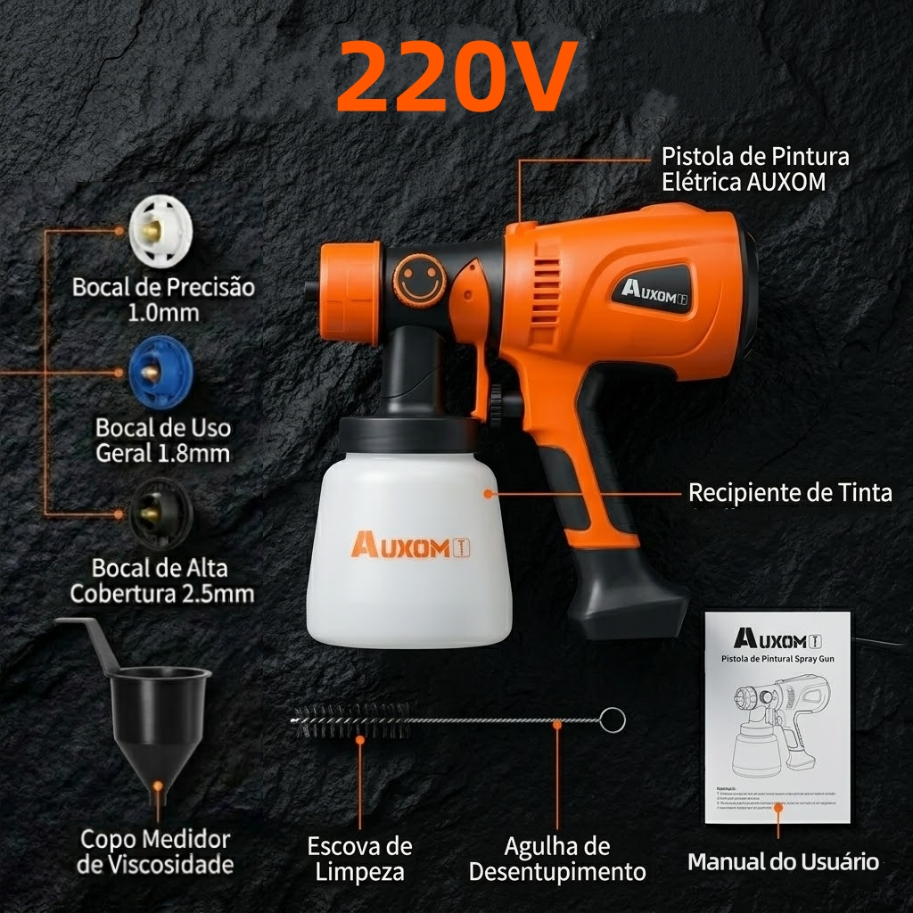 Pistola de Pintura Elétrica AUXOM 600W Profissional - Suporta 80 DIN/S e Látex, 800ml com 3 Bicos