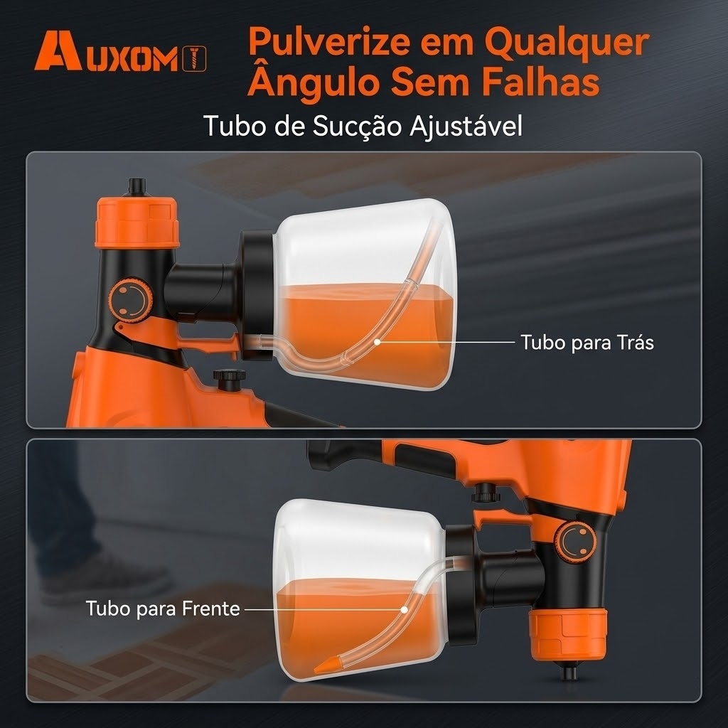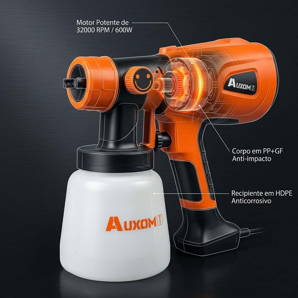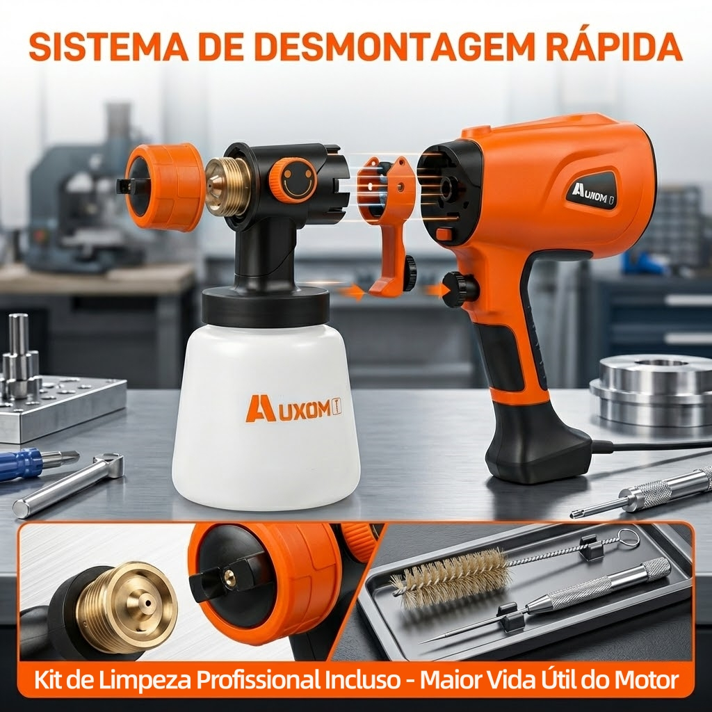 Pistola de Pintura Elétrica AUXOM 600W Profissional - Suporta 80 DIN/S e Látex, 800ml com 3 Bicos