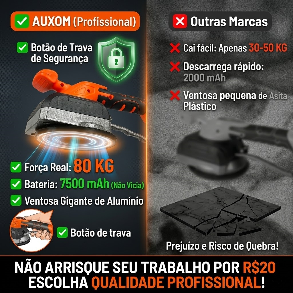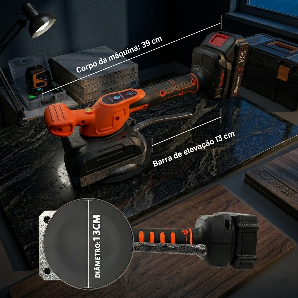Máquina De Assentar Piso Porcelanato Ventosa 130mm Vibração 80kg 2 Baterias 21v Maleta AUXOM