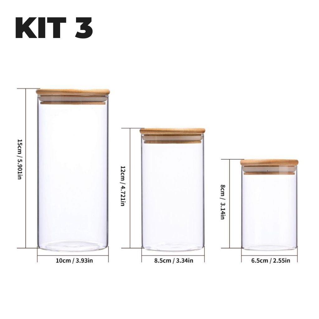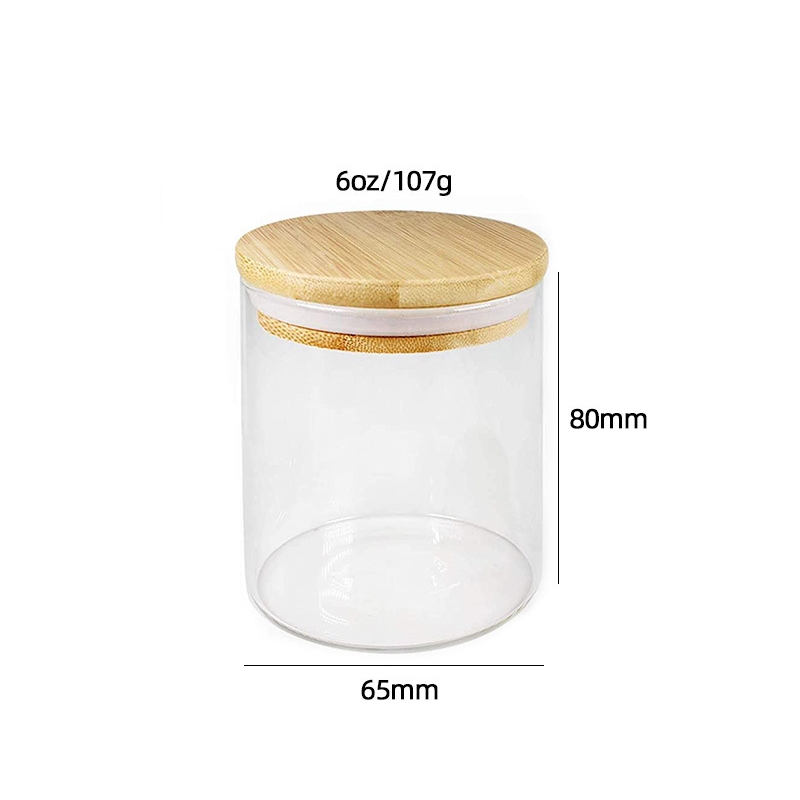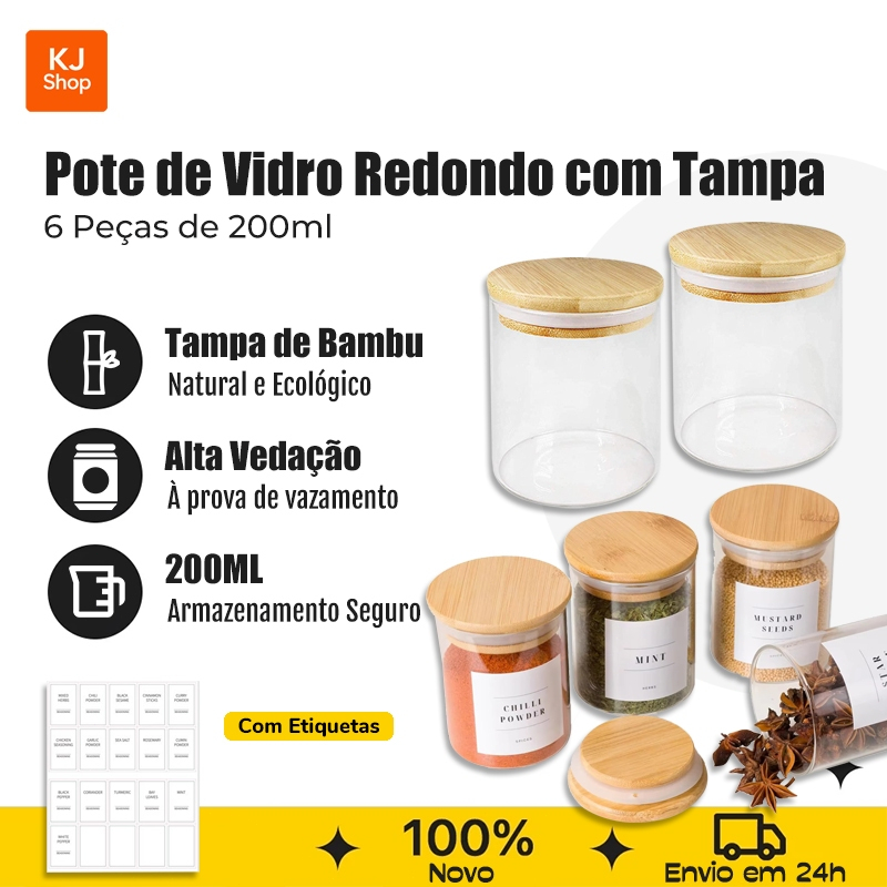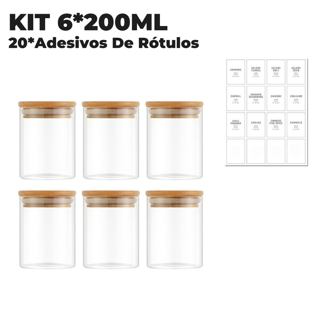 6 Potes de Vidro 200ml com Tampa de Bambu Natural Armazenamento Hermético para Alimentos