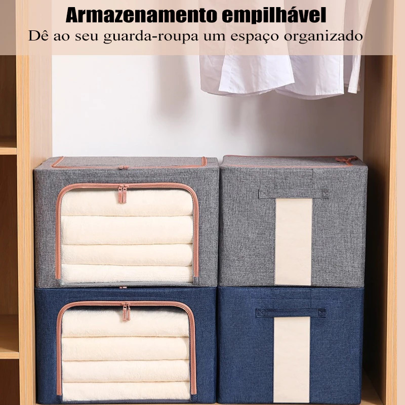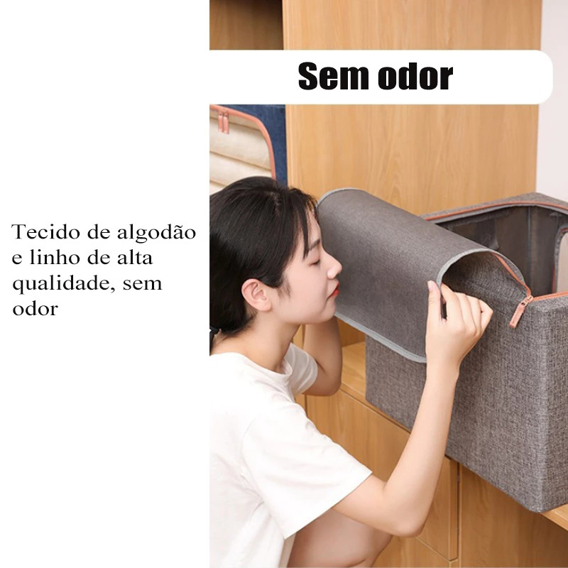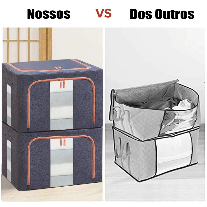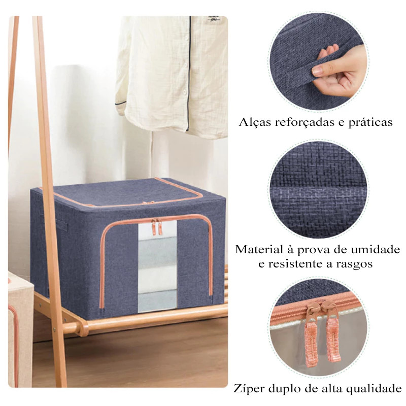 Caixa Organizadora com Tampa 60L Dobrável Portátil com Zíper e Estrutura Rígid Anti-Poeira/Humidade