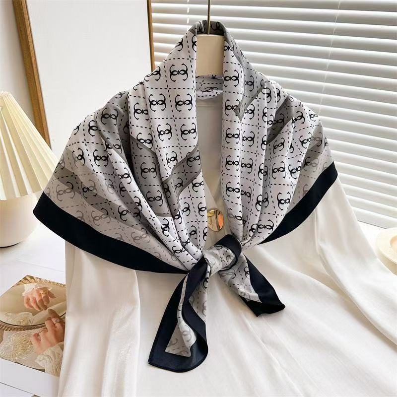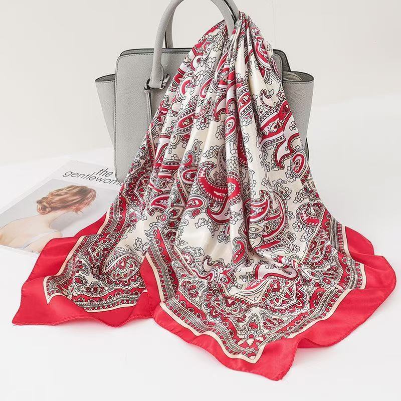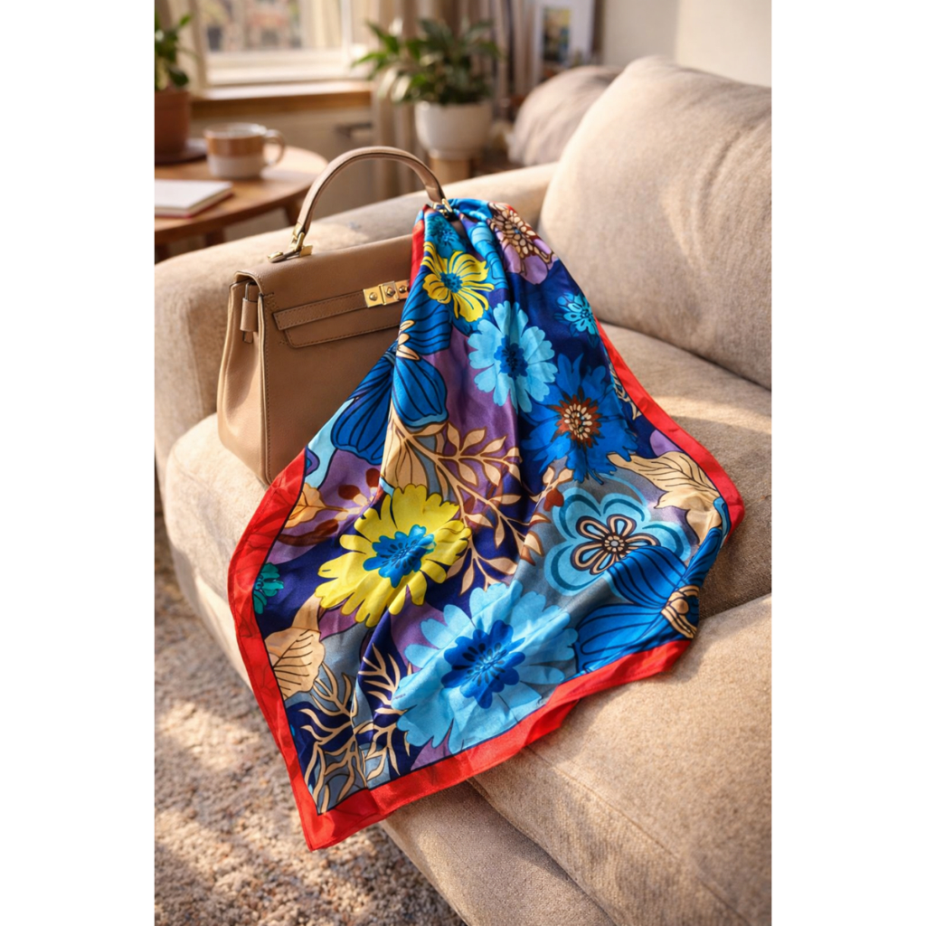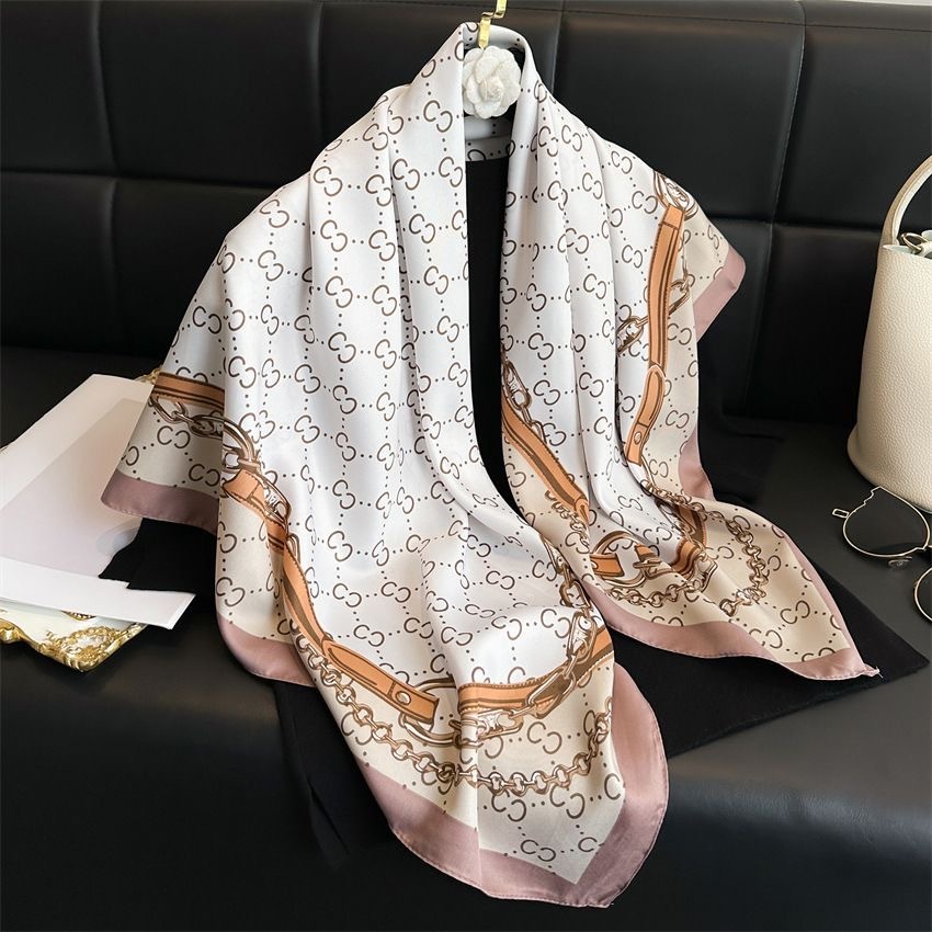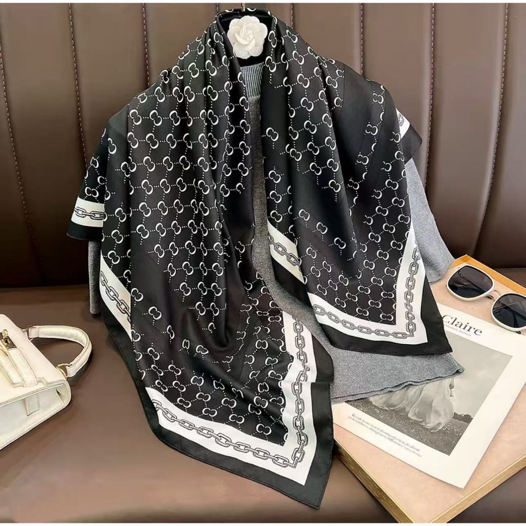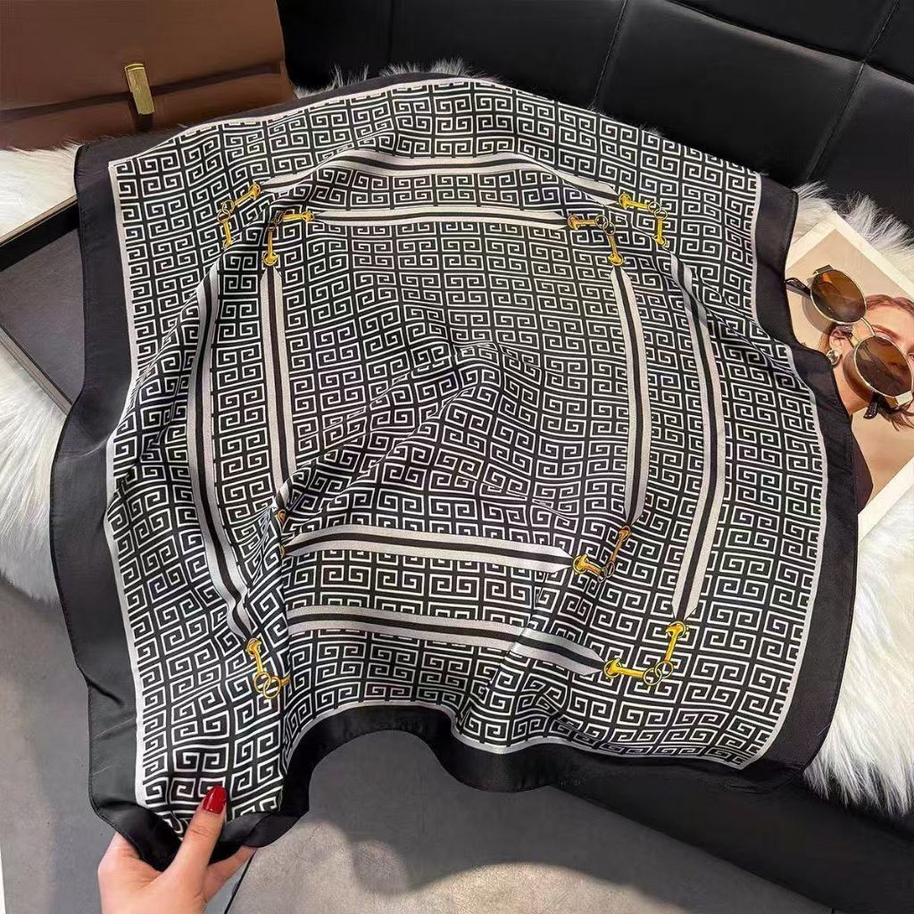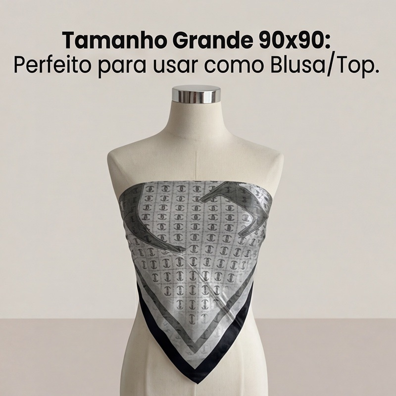 Lenço Feminino de Seda Pura 90x90cm Luxo Elegante Versátil Moda Feminina Chic Várias Formas de Uso