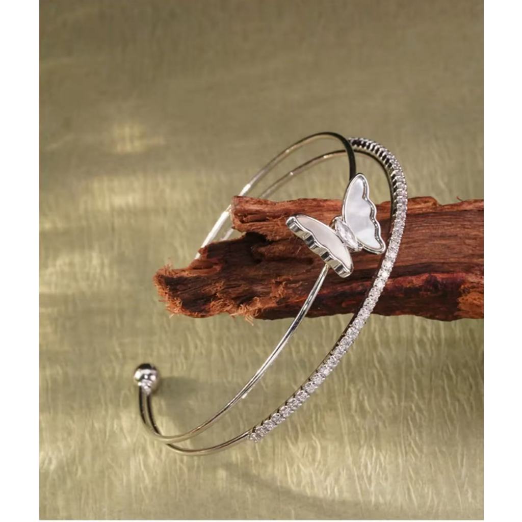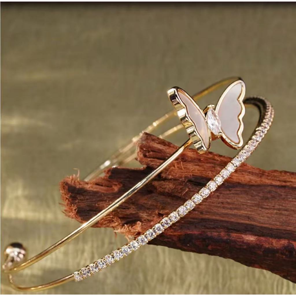 Pulseira Dupla Camada Borboleta com Zircônias - Presente Feminino