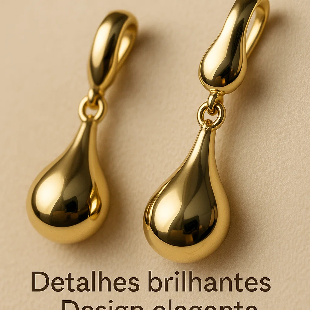 Brinco Gota Feminino Banhado a Ouro 18K Luxo Europeu Elegante Não Desbota Premium