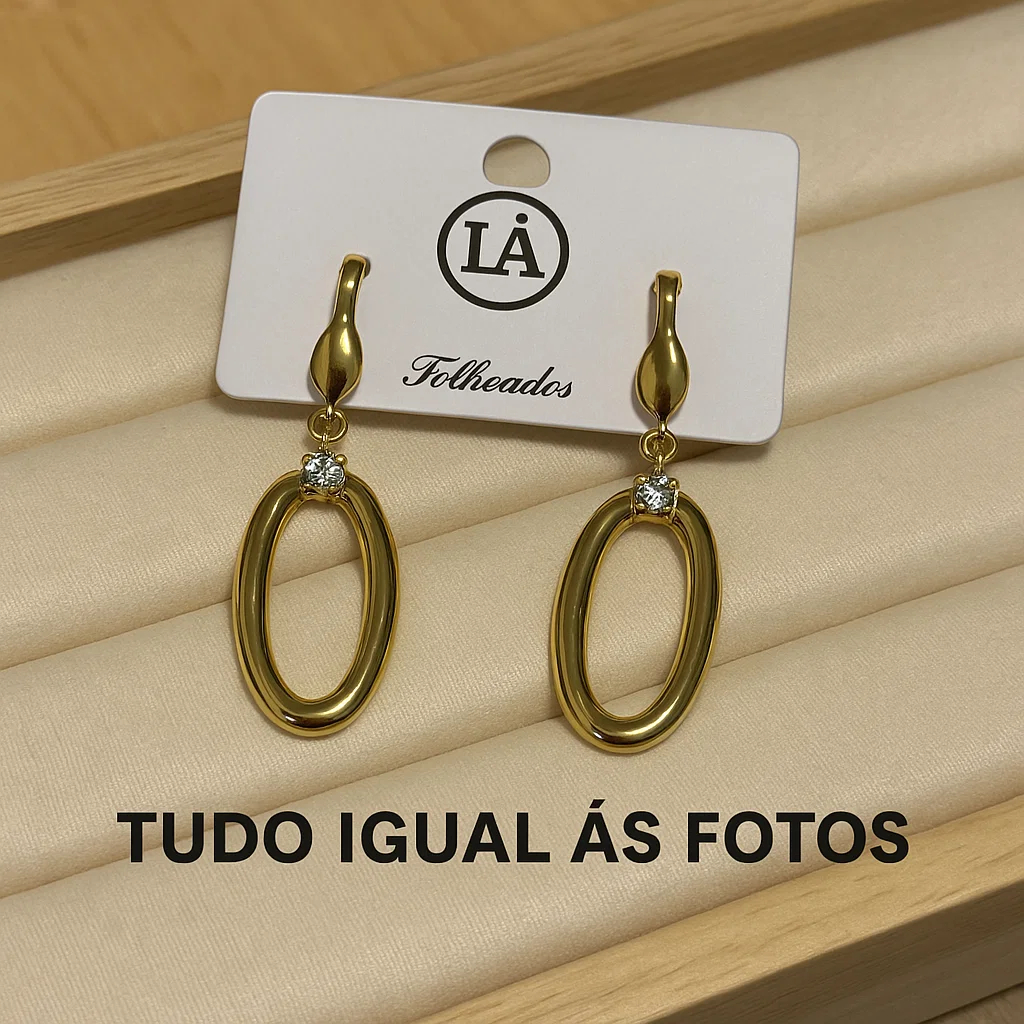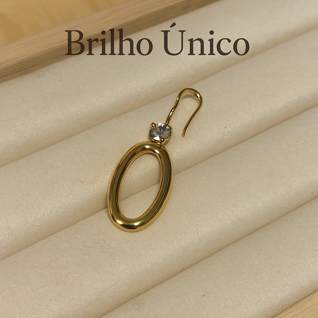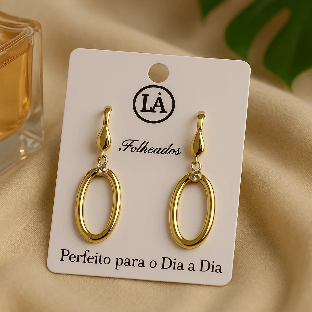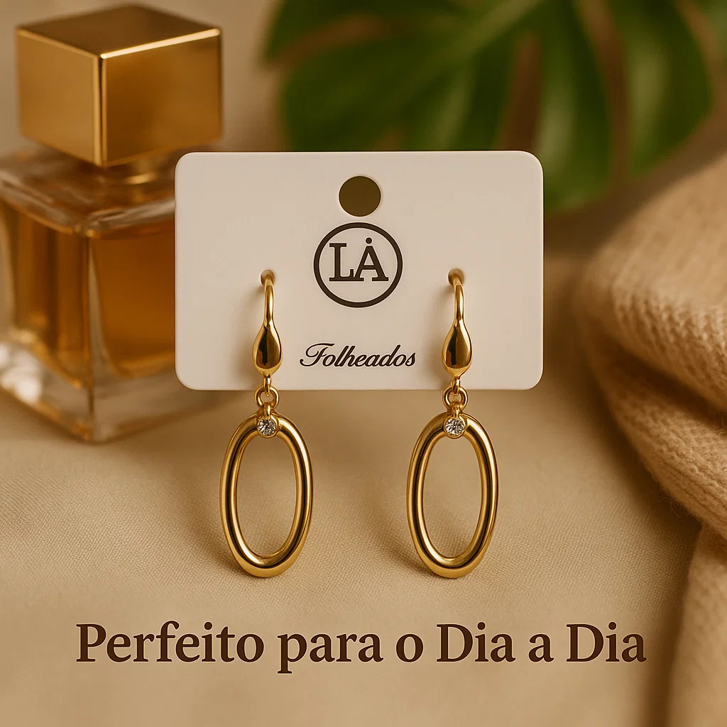 Brincos 18K Oval Moderno Feminino — Leve, Confortável, Antialérgico