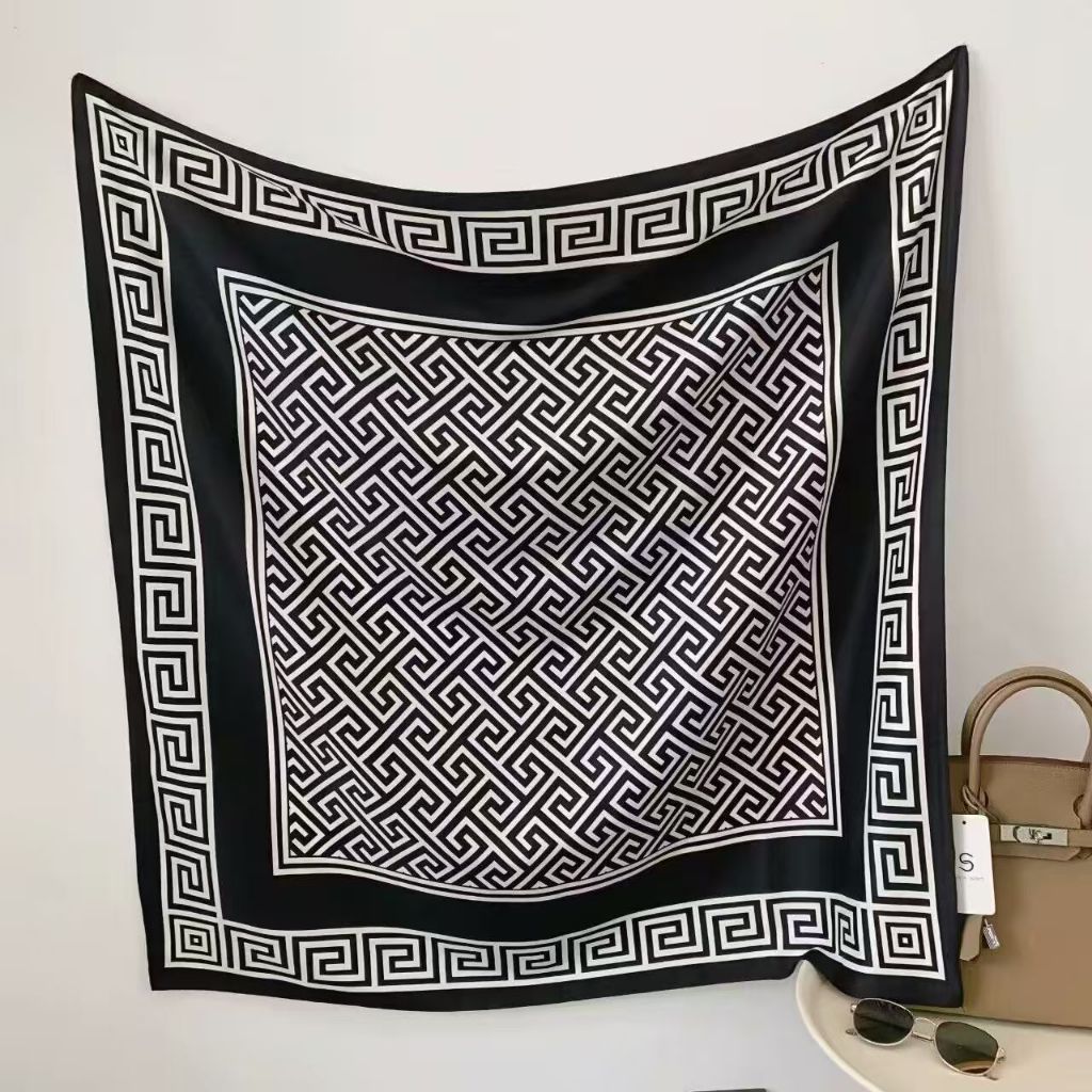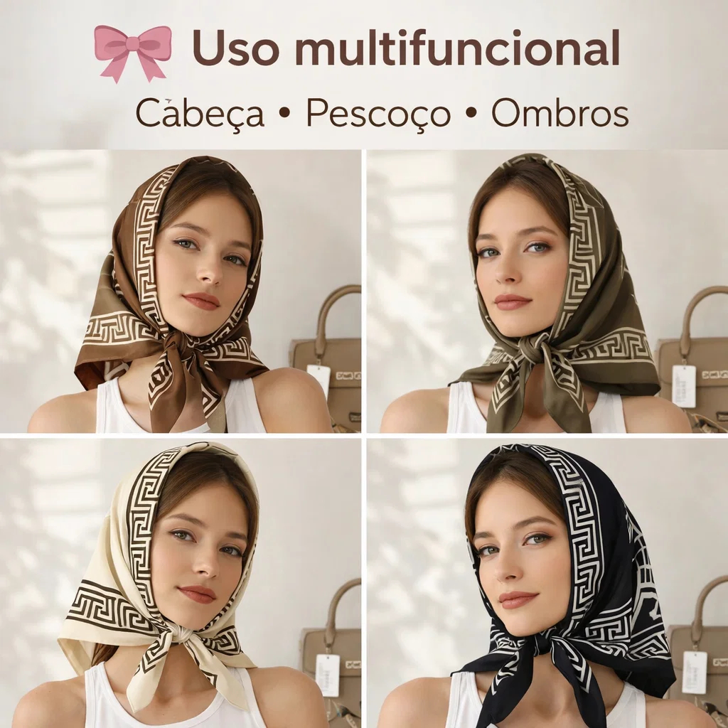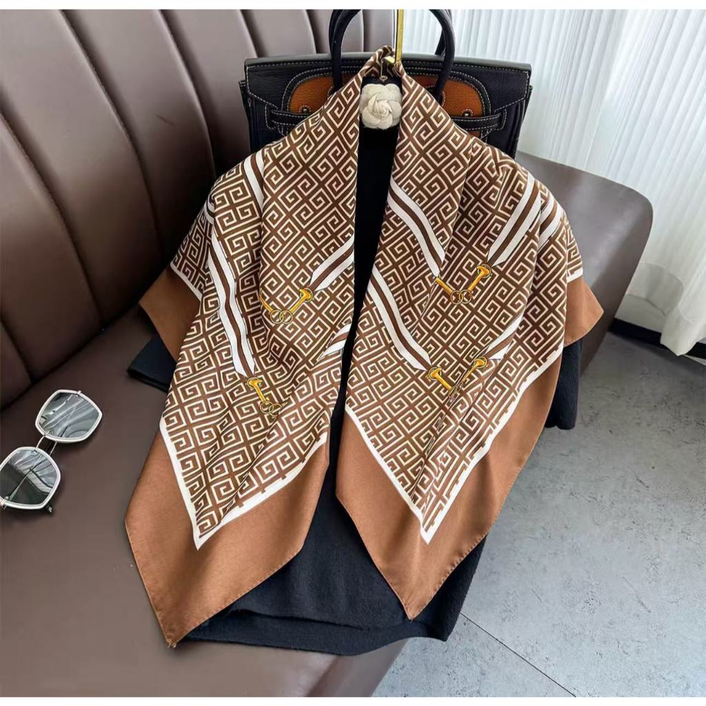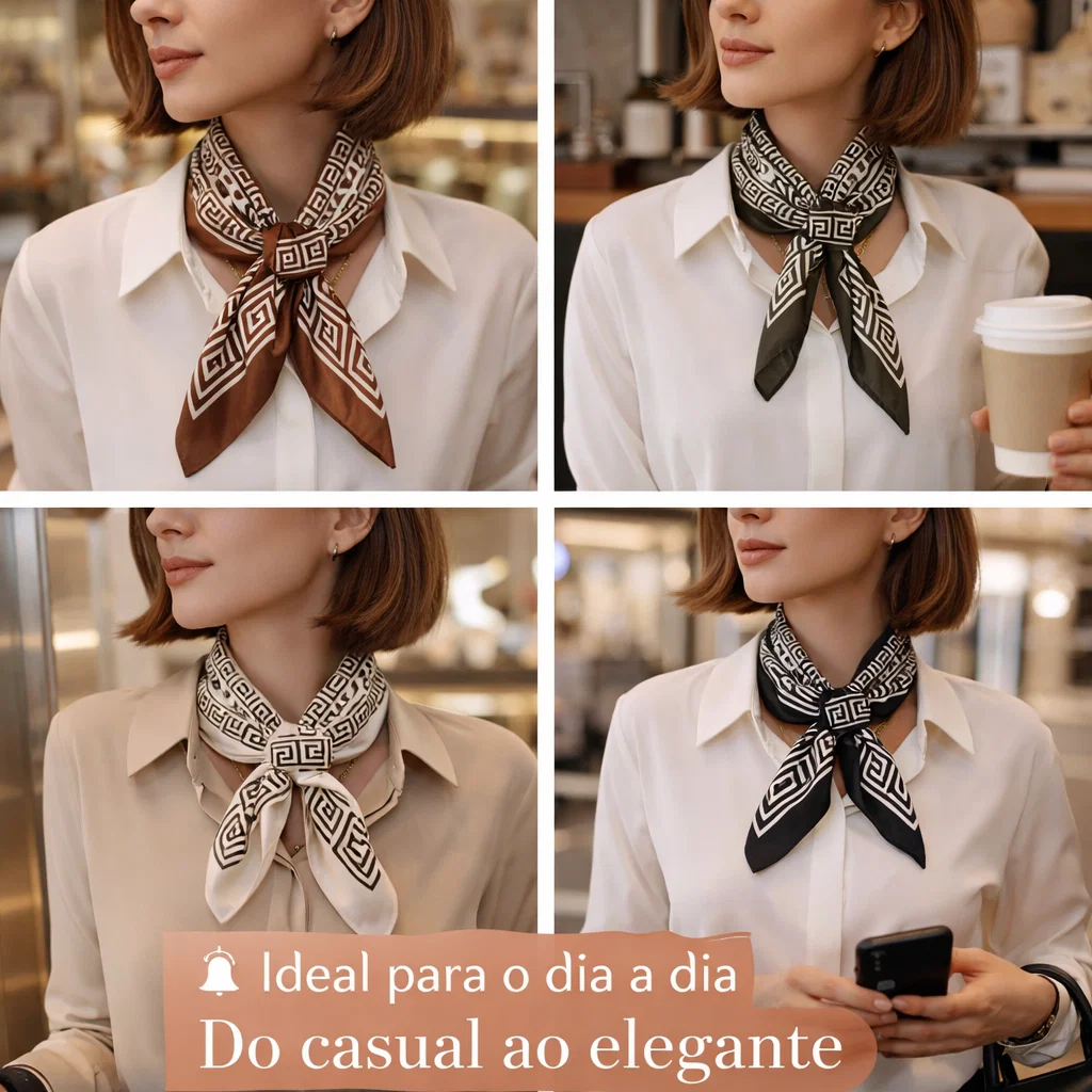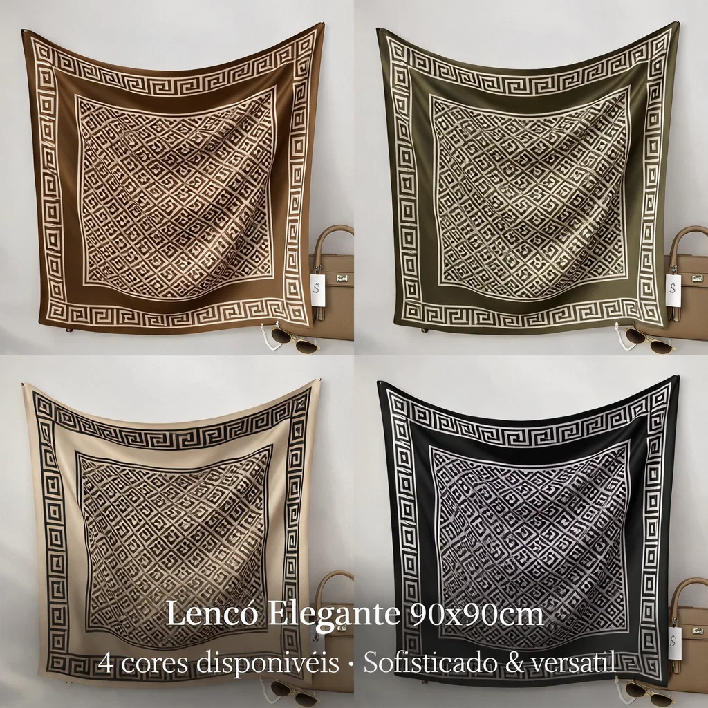 Lenço Feminino Elegante 90x90cm Estampa Geométrica Luxo Premium