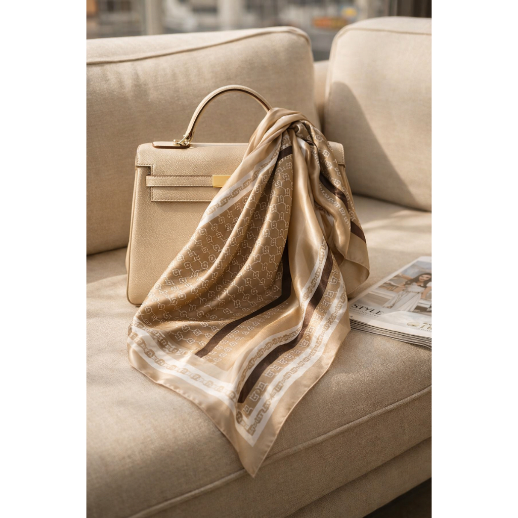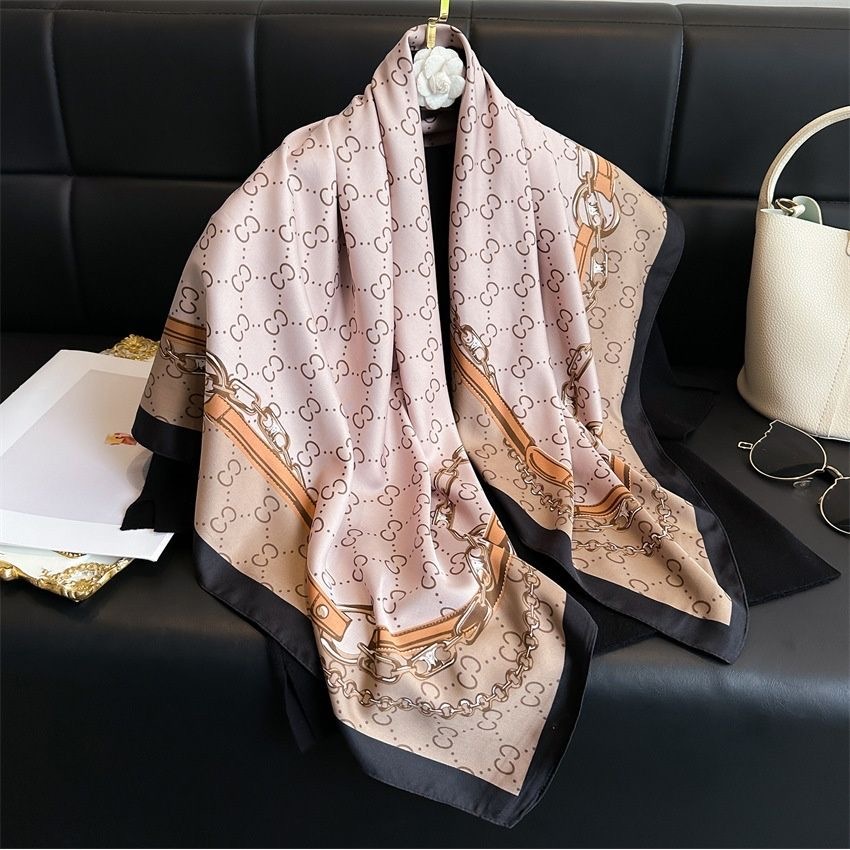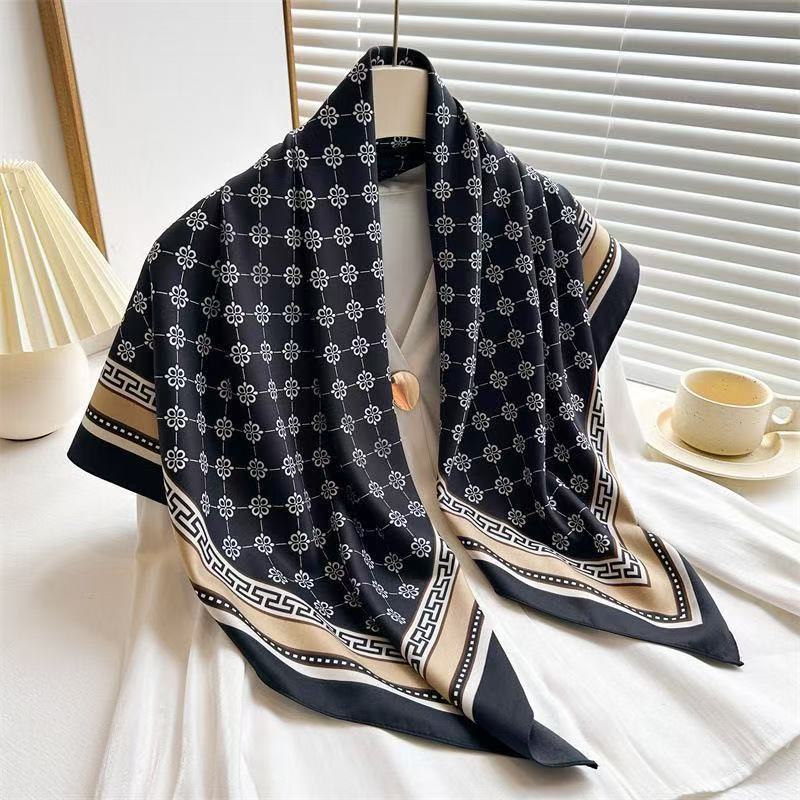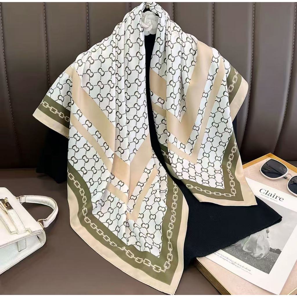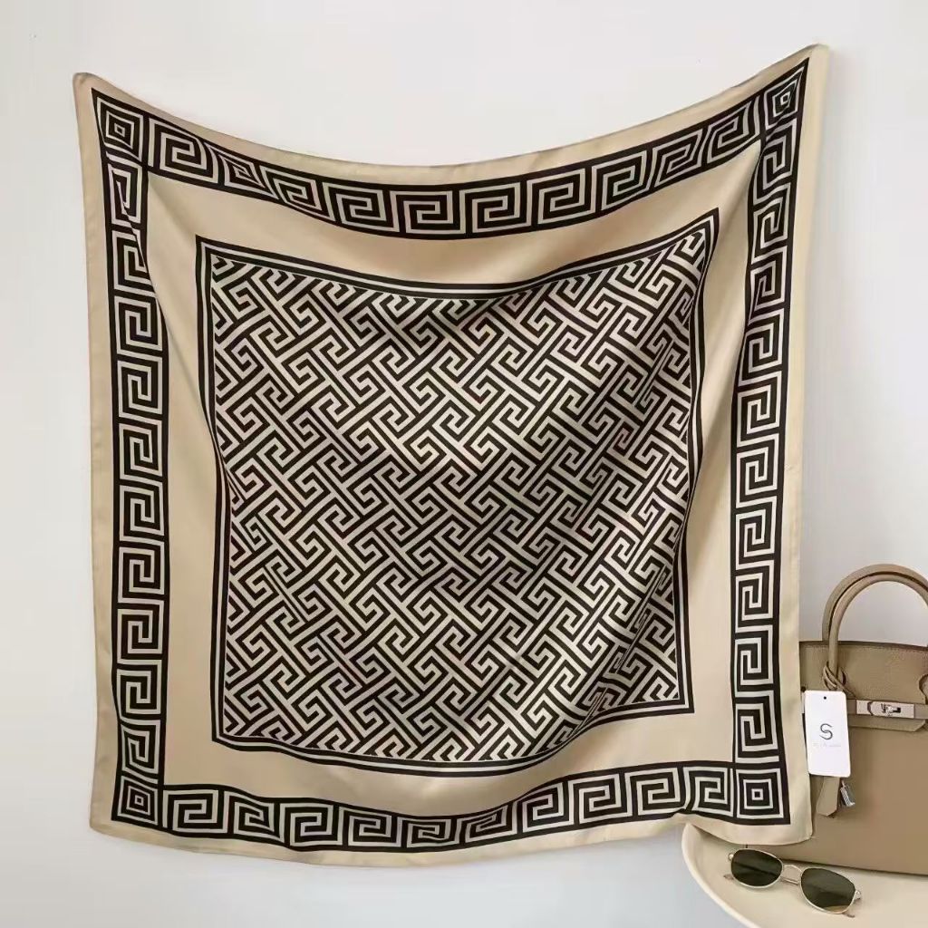 Lenço Feminino Elegante 90x90cm Estampa Geométrica Luxo Premium