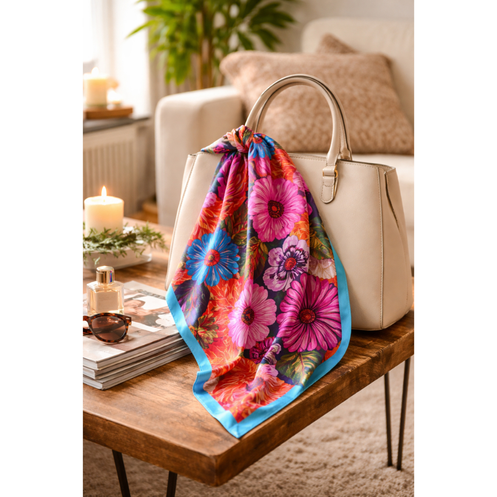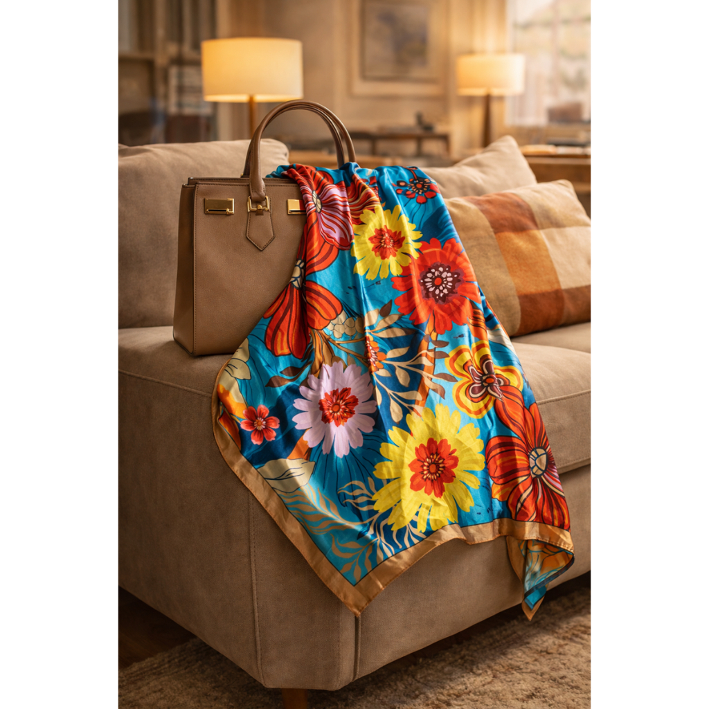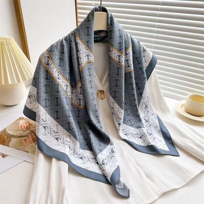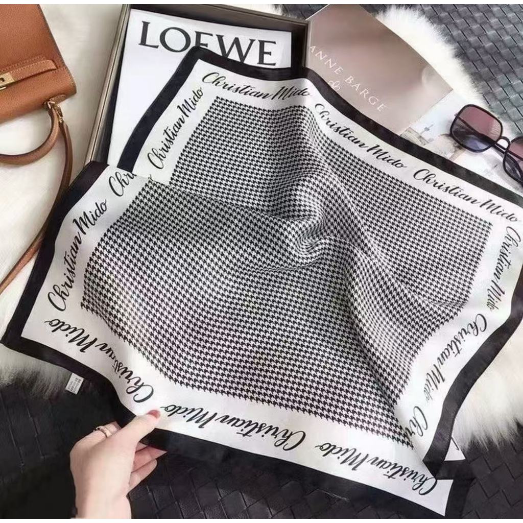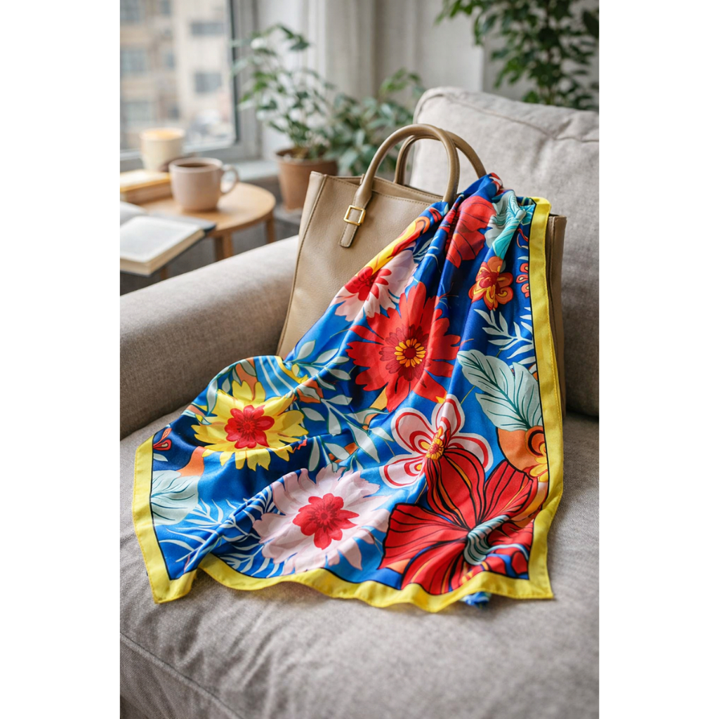 Lenço Feminino Elegante 90x90cm Estampa Geométrica Luxo Premium
