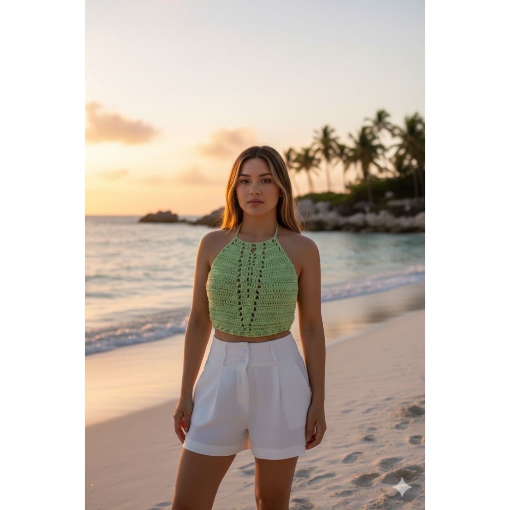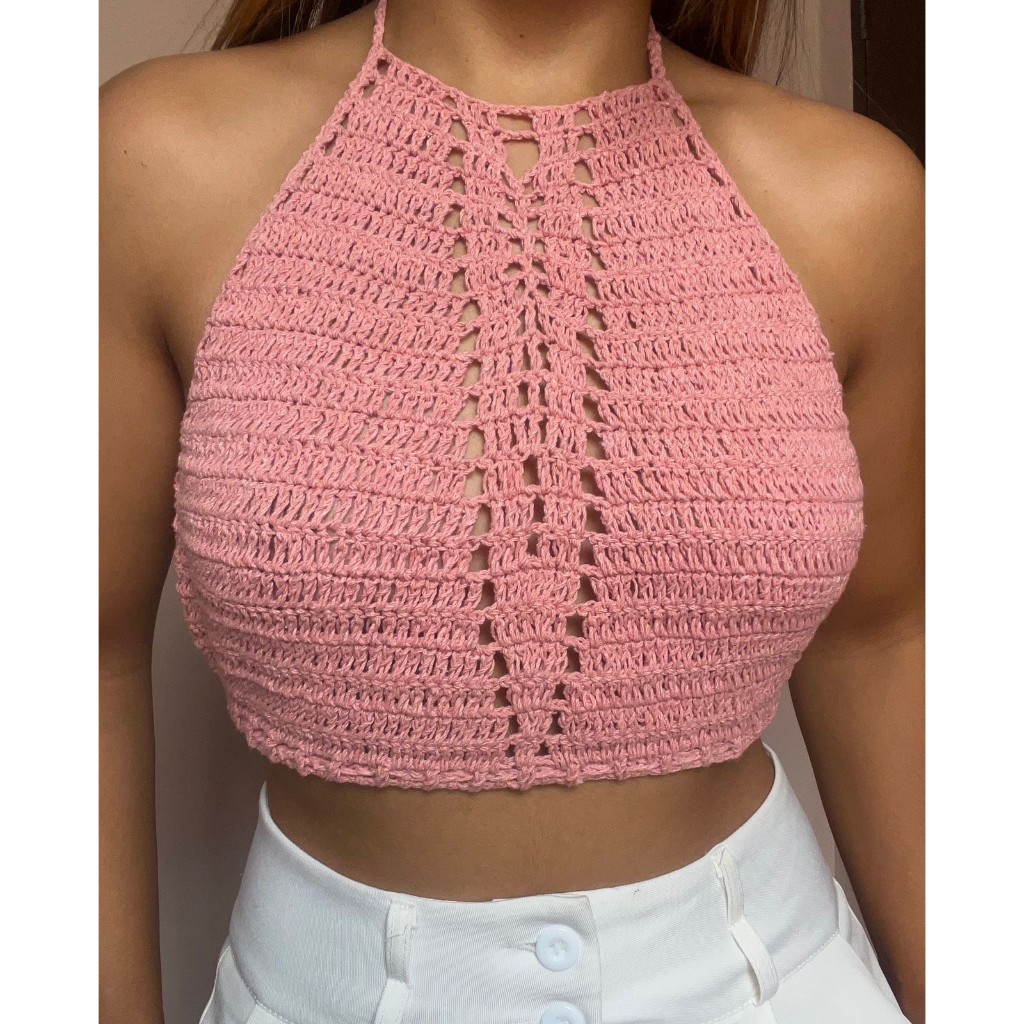 Cropped Top De Crochê Tendência Com Amarração Artesanal