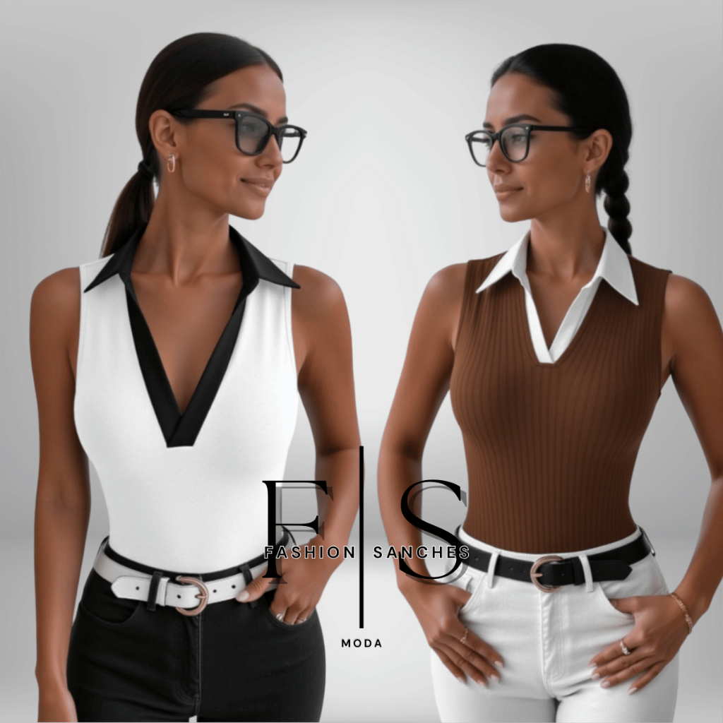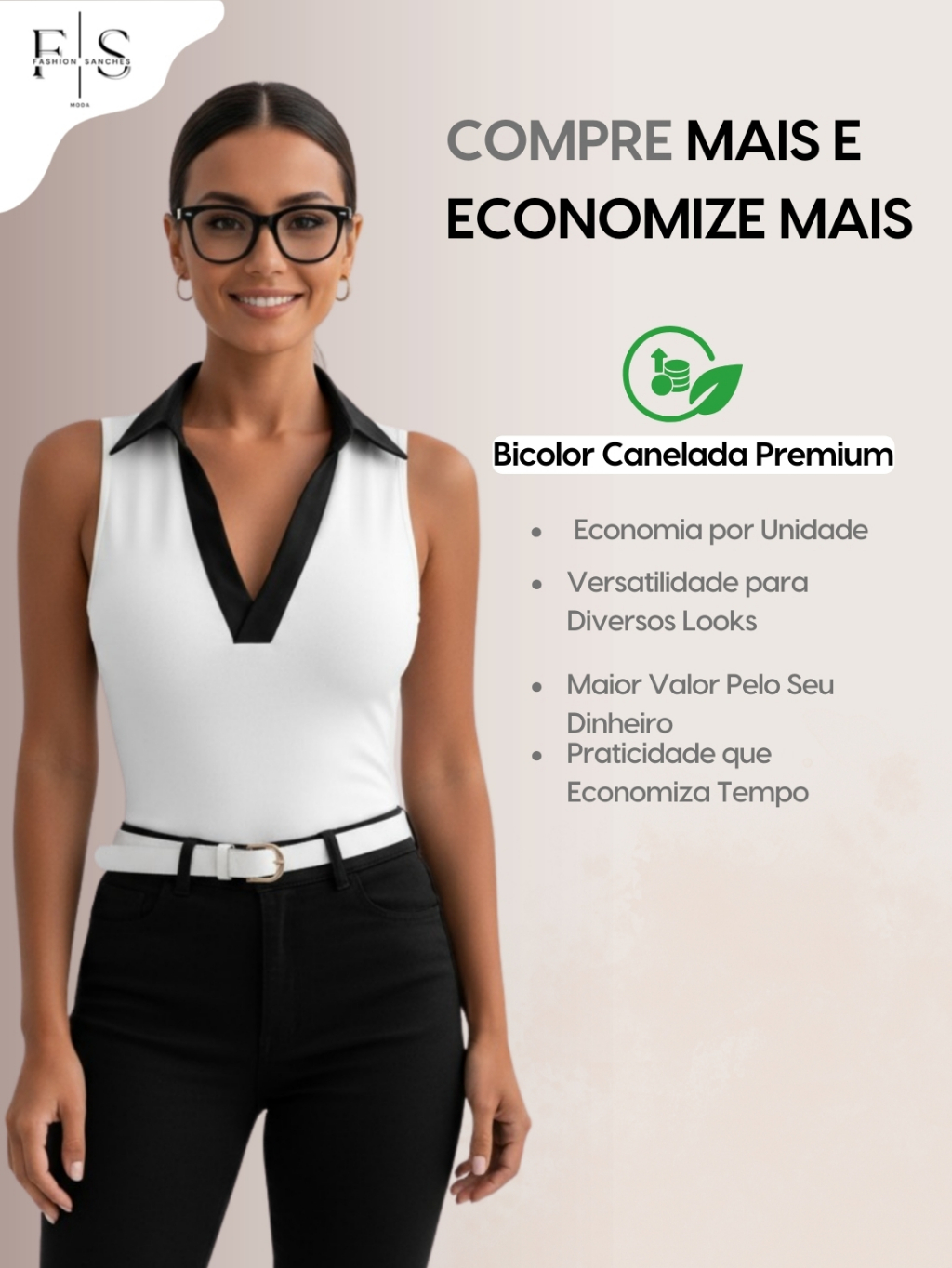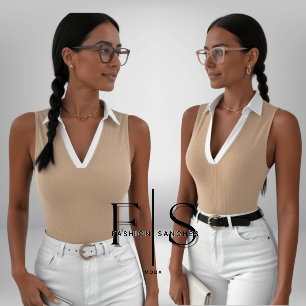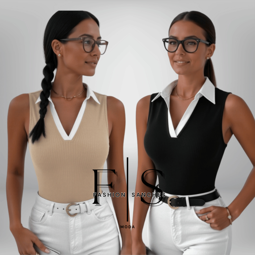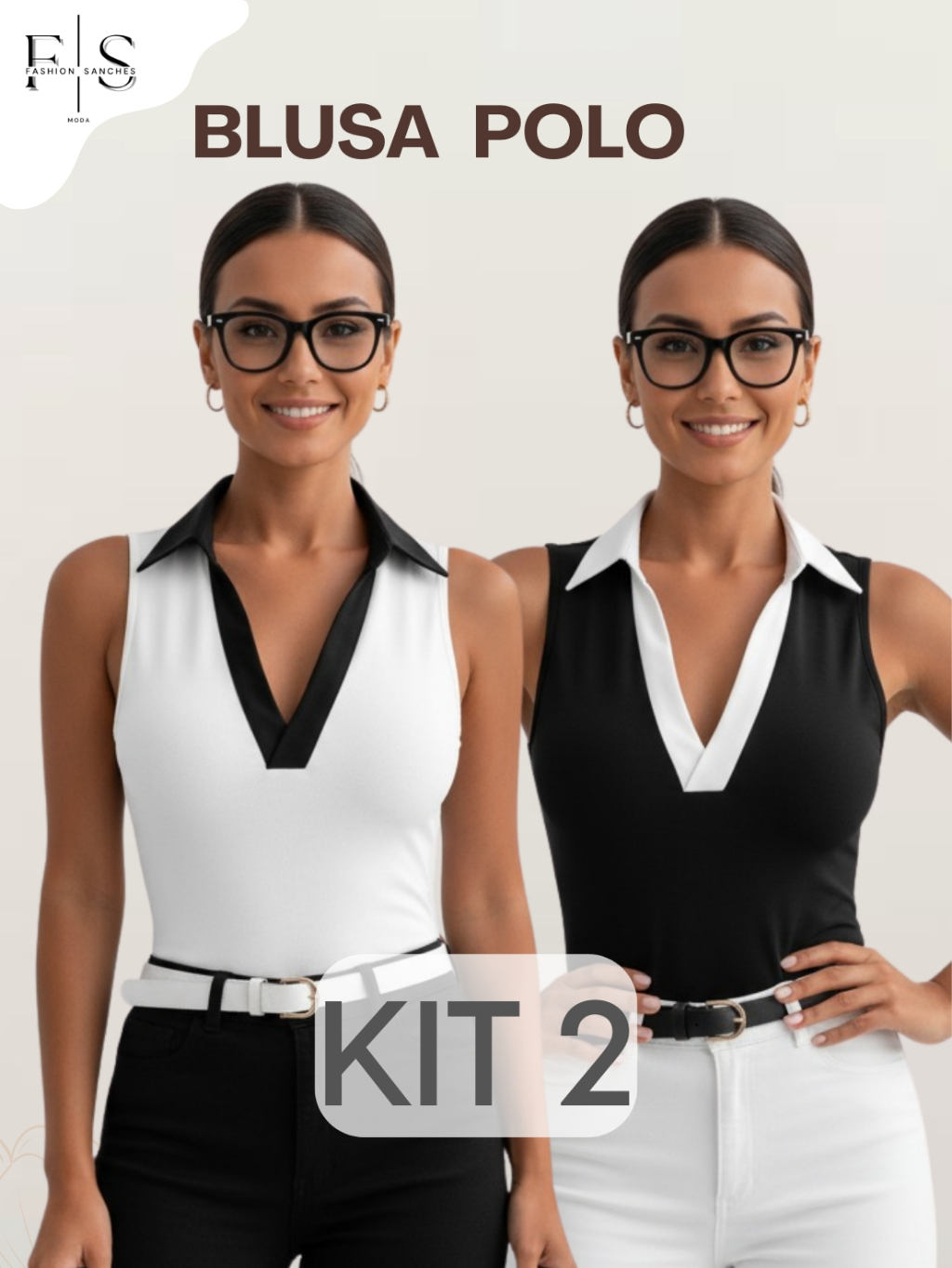 Kit 2 Blusas Regata Feminina Polo Canelada Bicolor Premium Social Casual Elegante Anarruga Básica