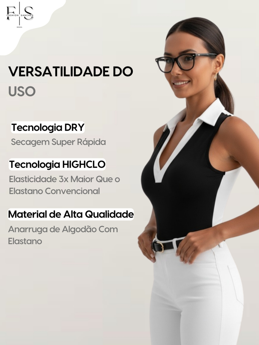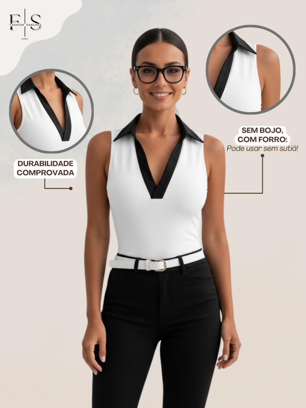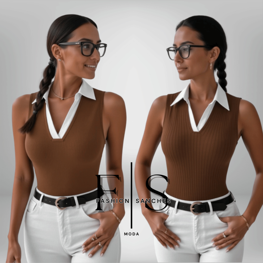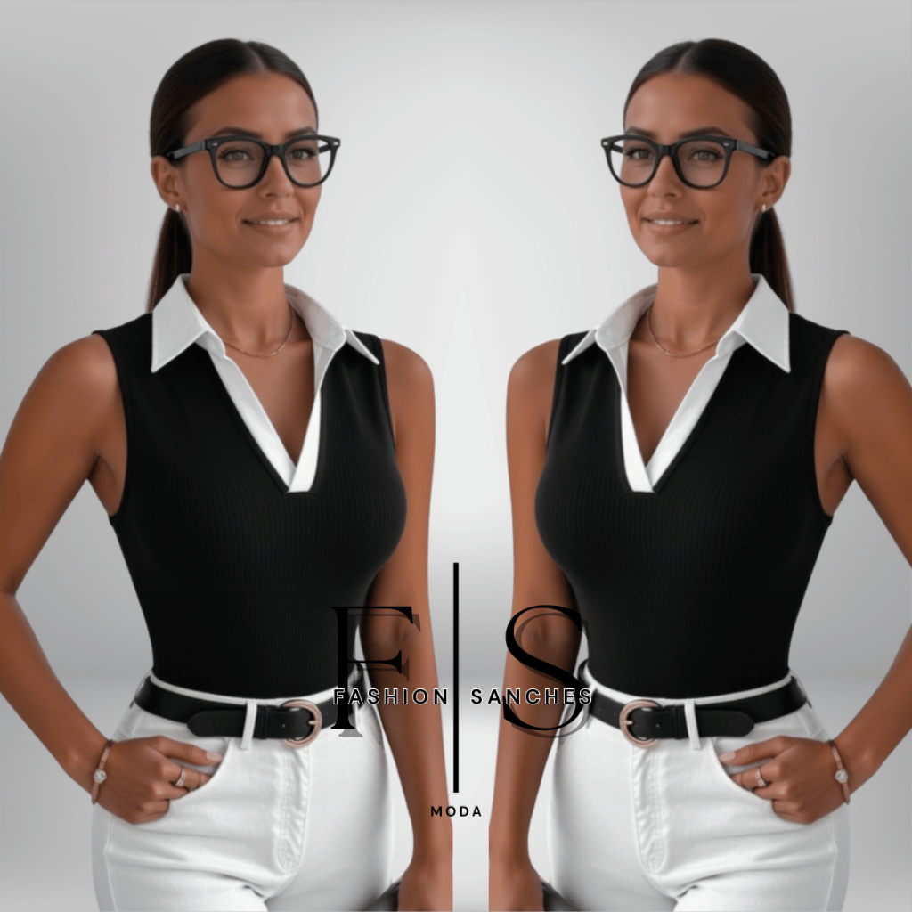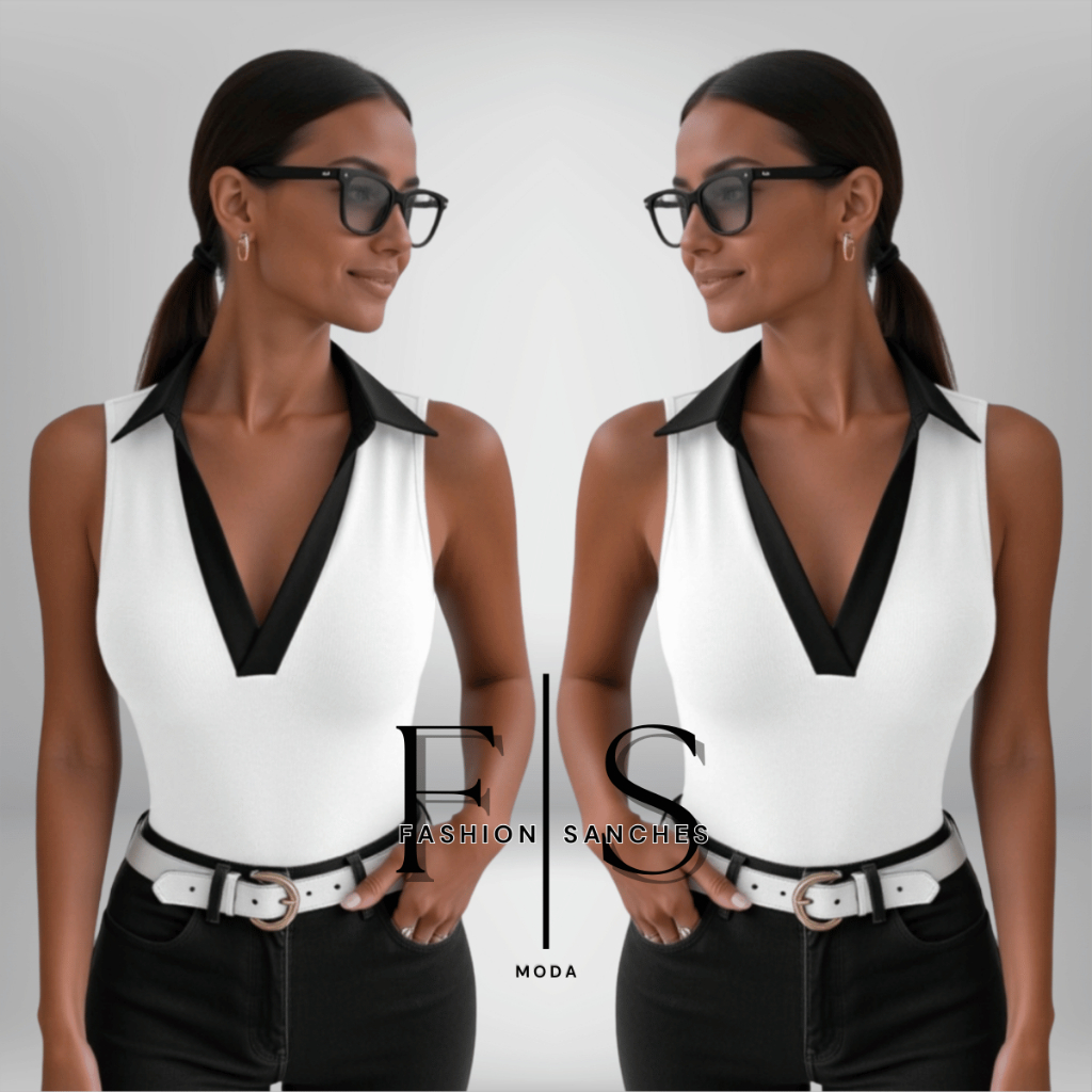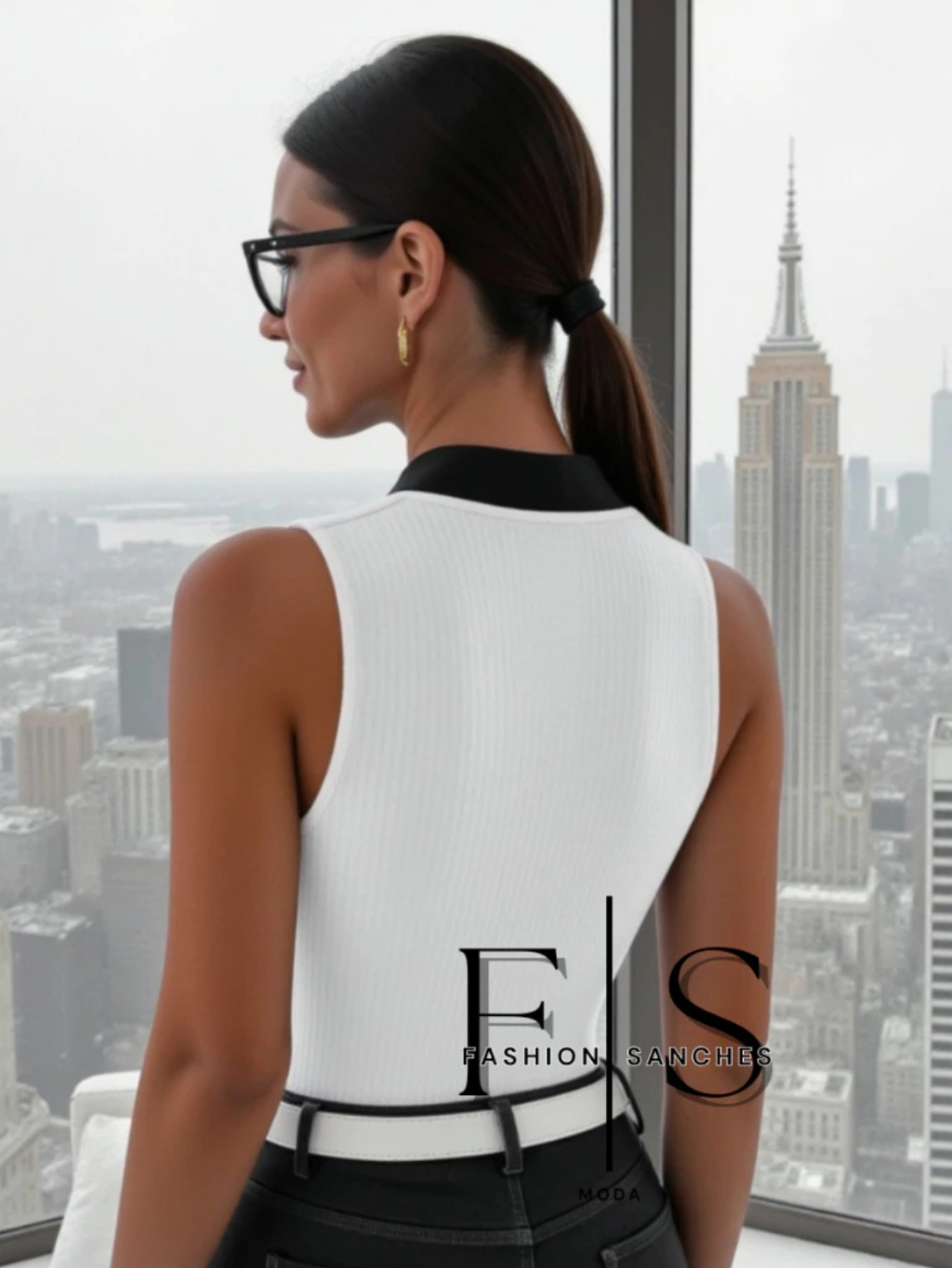 Kit 2 Blusas Regata Feminina Polo Canelada Bicolor Premium Social Casual Elegante Anarruga Básica