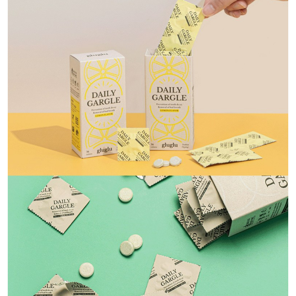 GLUGLU Colutório Sólido Sem Álcool 36 Comprimidos , 1 Caixa , 2 Tipos