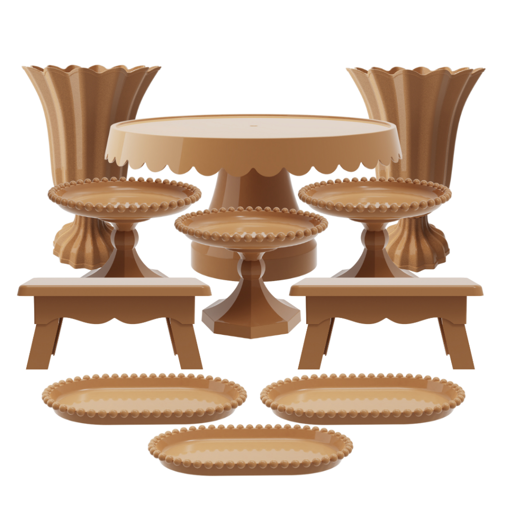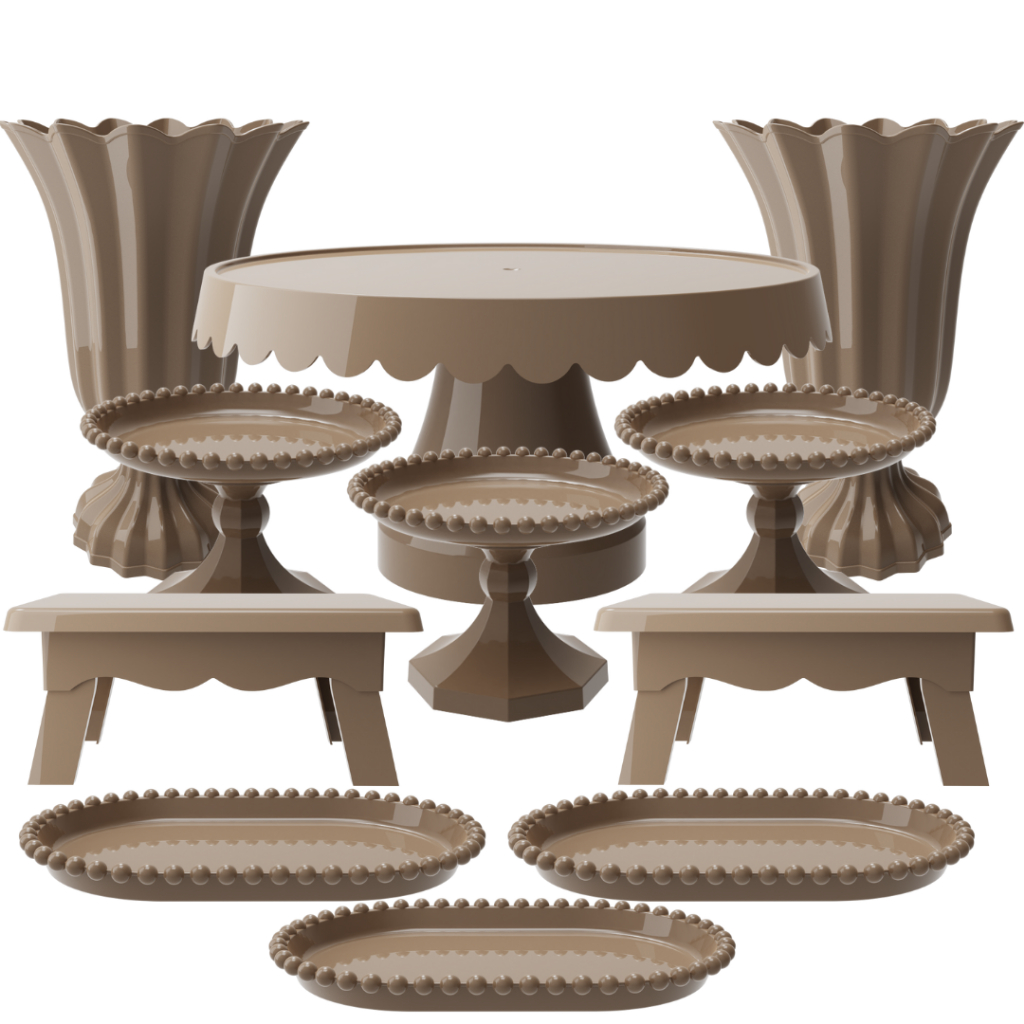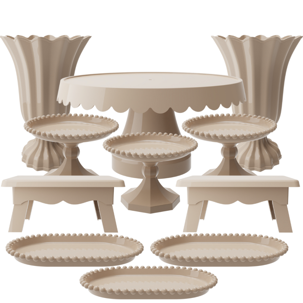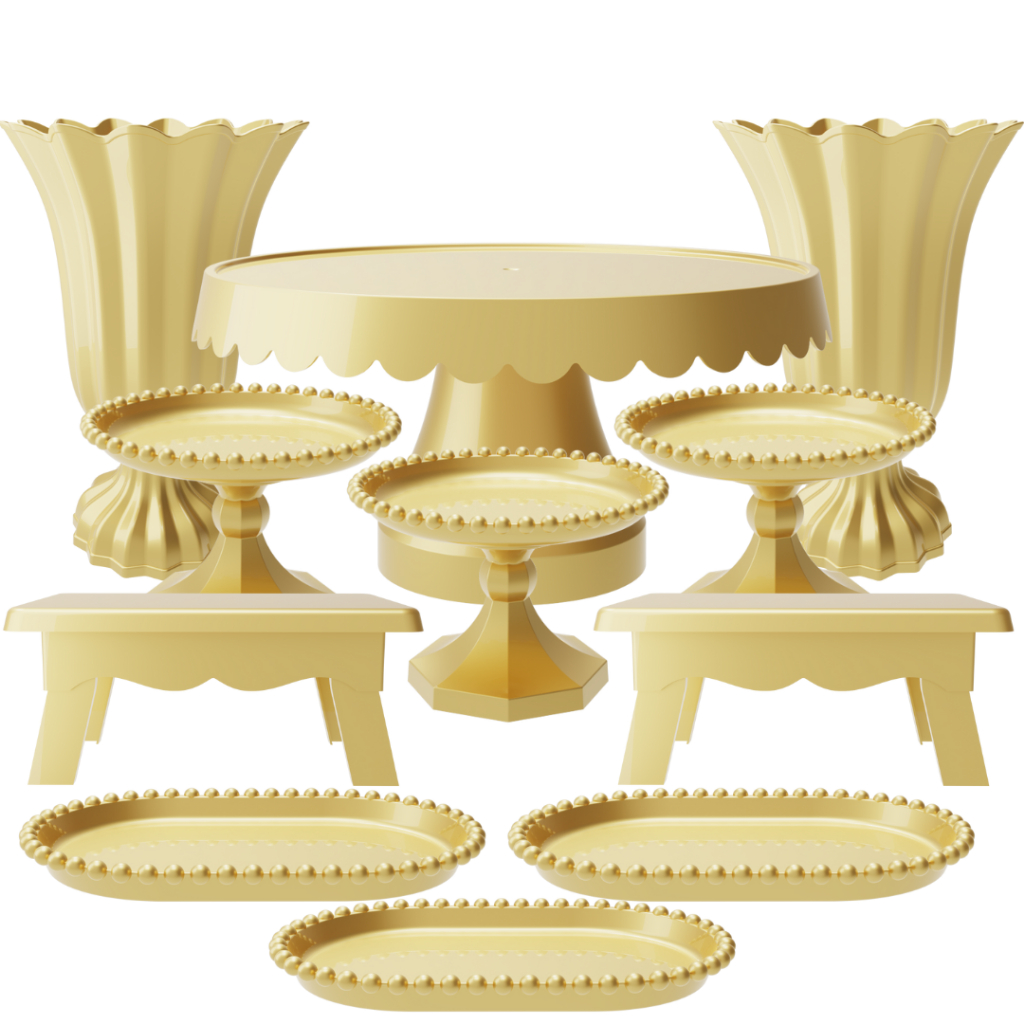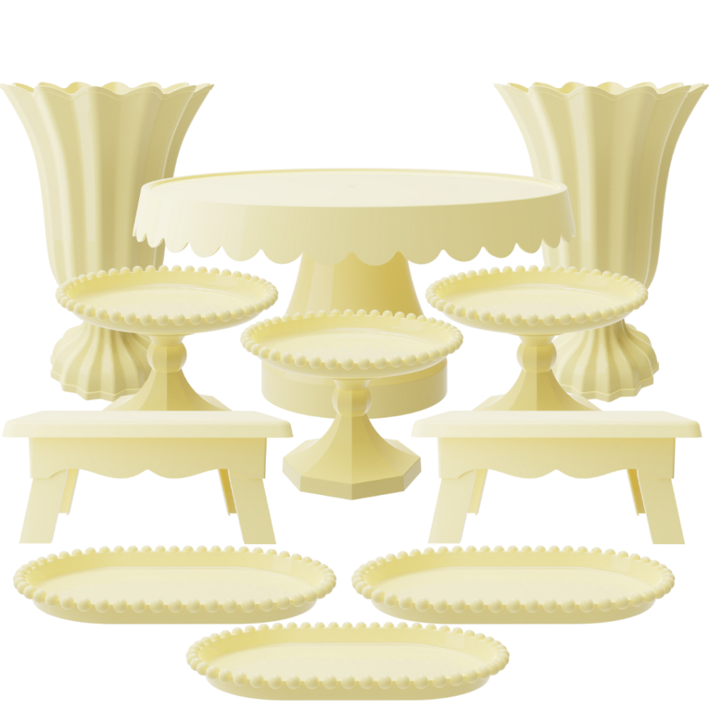 Kit Festa com 1 Boleira Popi Plus 2 Vasos Popi 2 Mesas 3 Mini Boleiras Pérola e 3 Bandejas Pérola