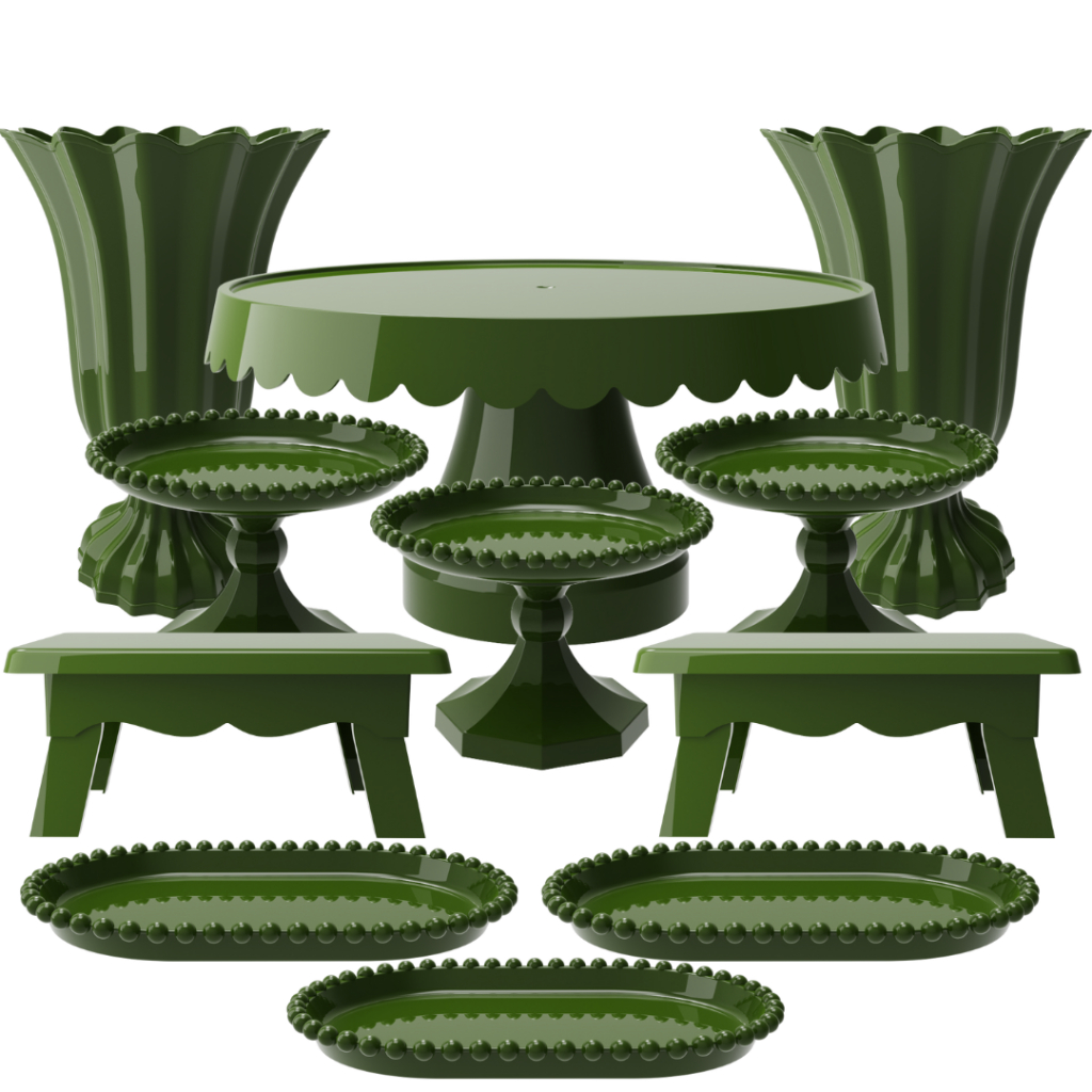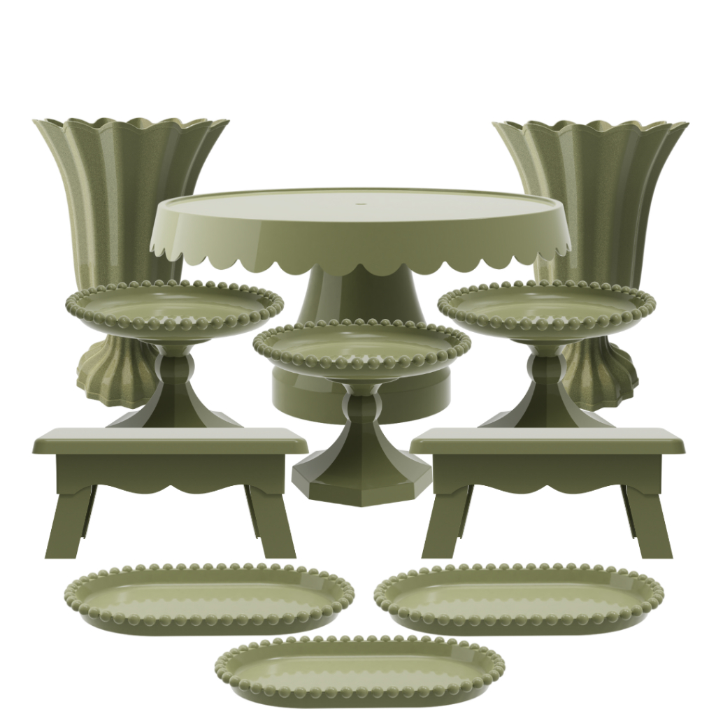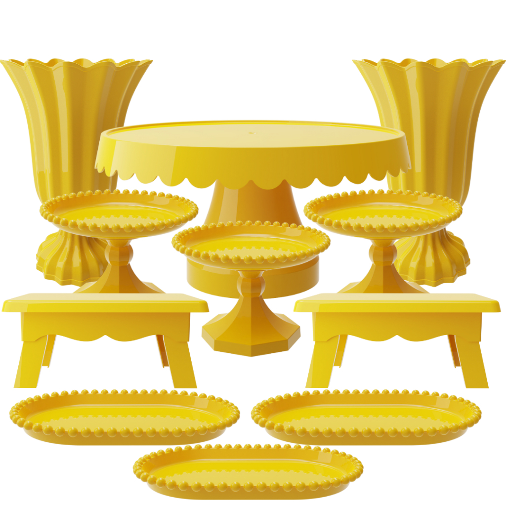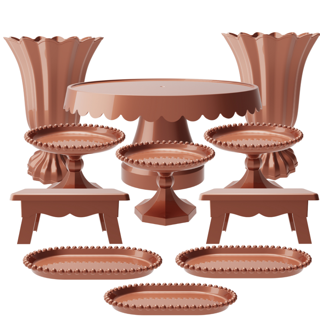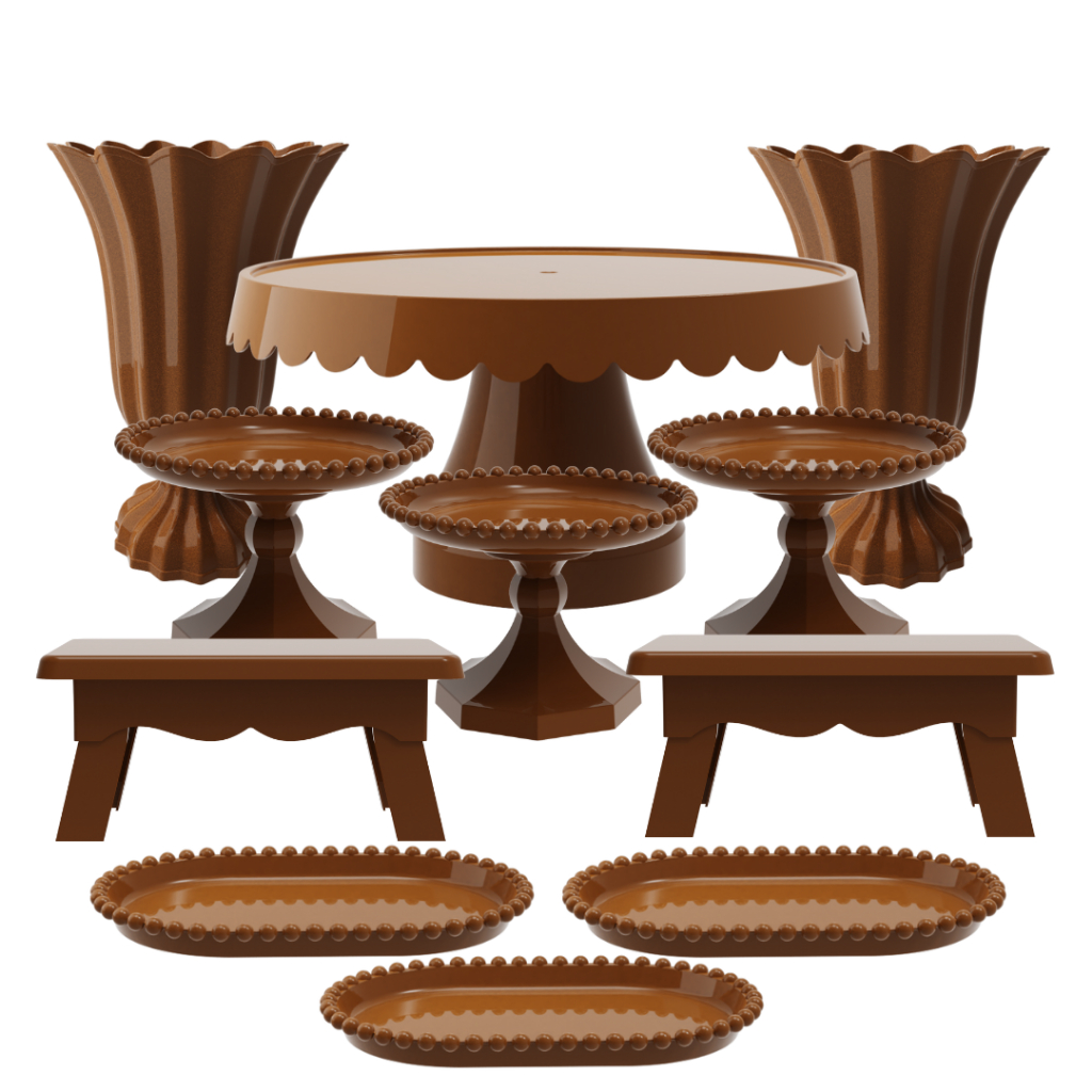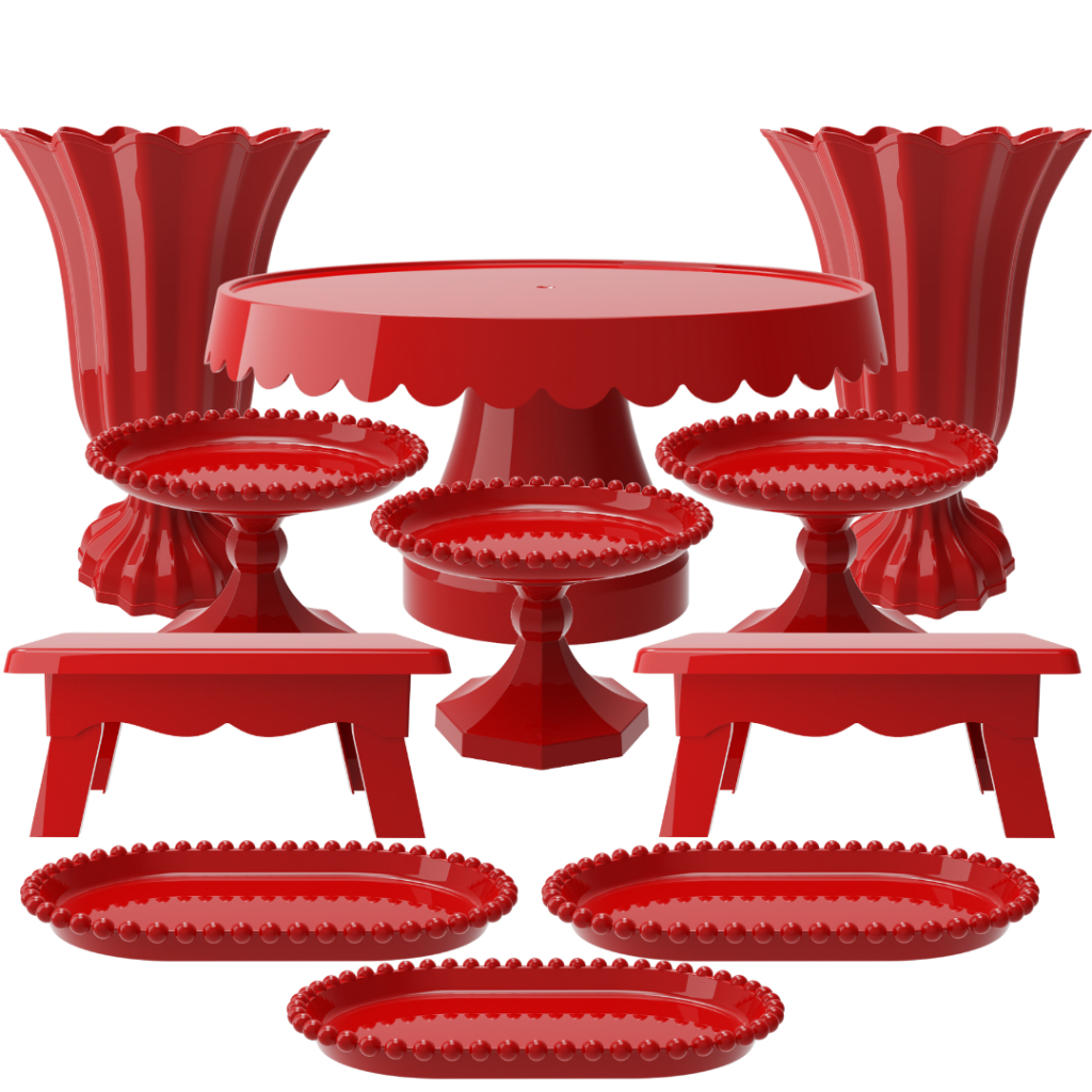 Kit Festa com 1 Boleira Popi Plus 2 Vasos Popi 2 Mesas 3 Mini Boleiras Pérola e 3 Bandejas Pérola