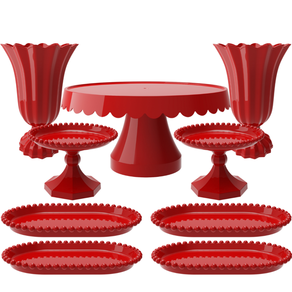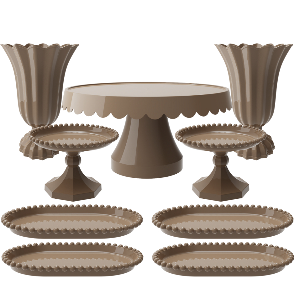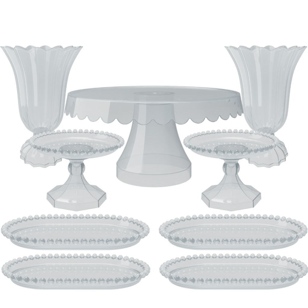 Kit de Festa com 1 Boleira Popi Plus, 2 Vasos Popi, 2 Mini Boleiras Pérola e 4 Bandejas pérola