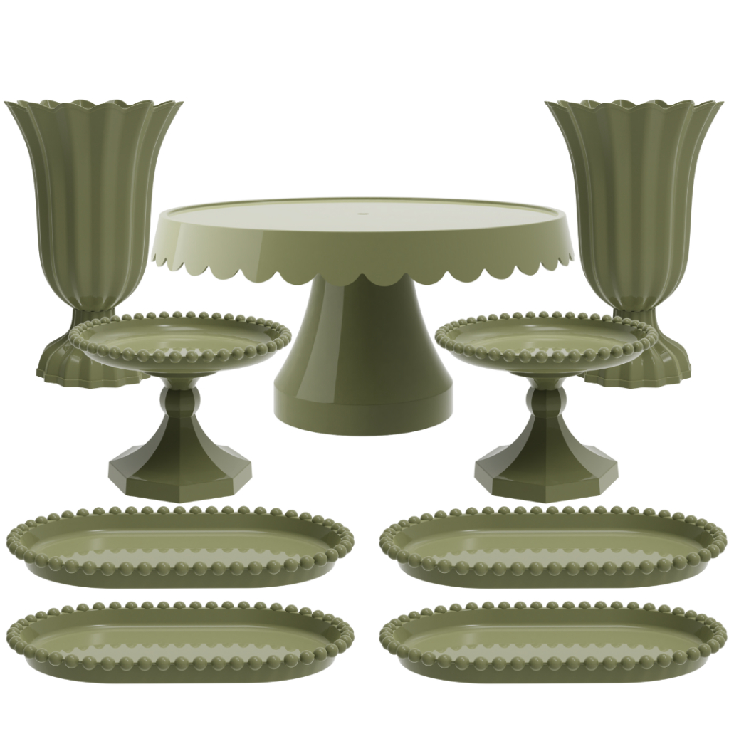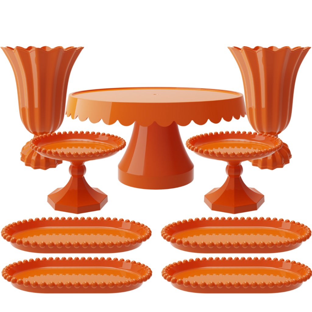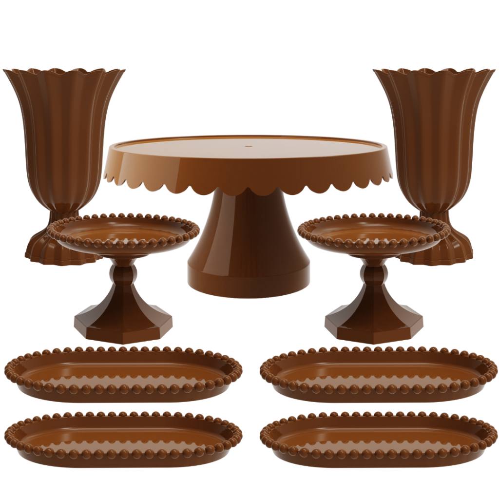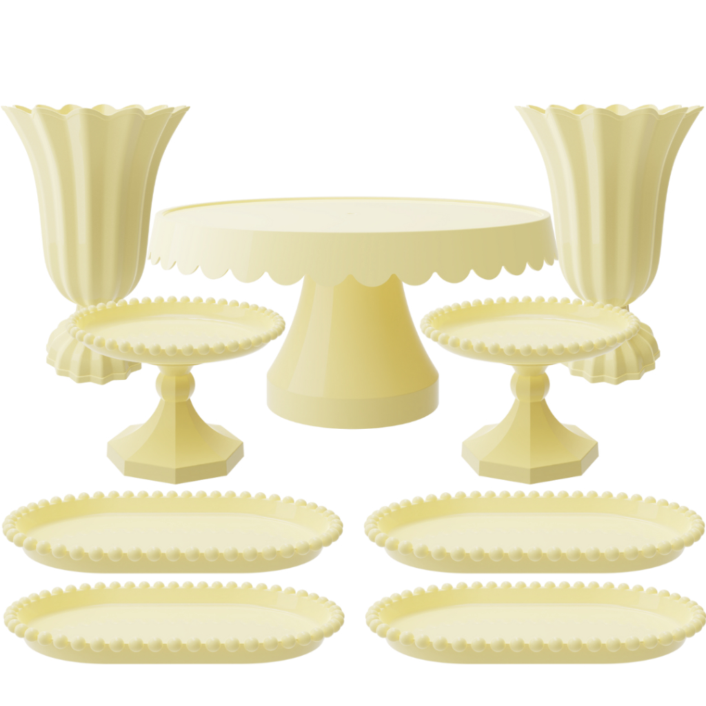 Kit de Festa com 1 Boleira Popi Plus, 2 Vasos Popi, 2 Mini Boleiras Pérola e 4 Bandejas pérola