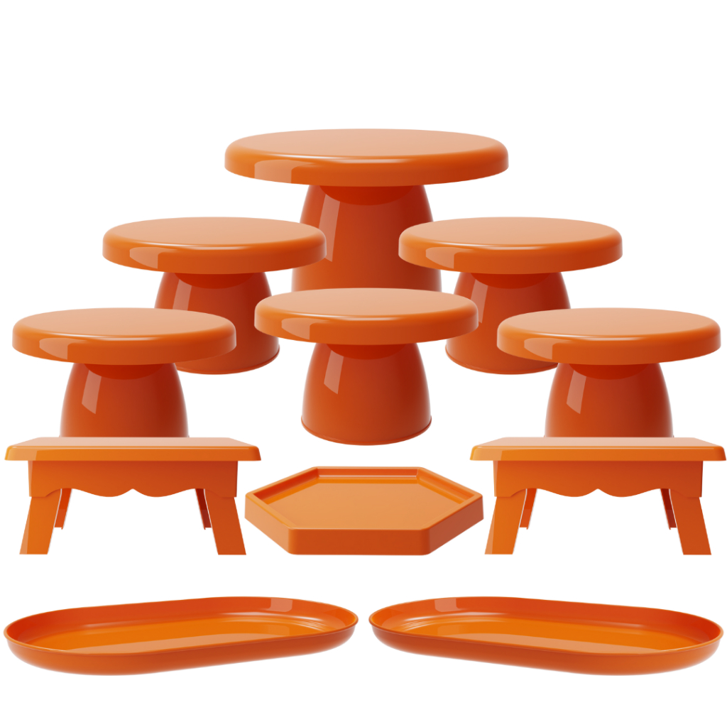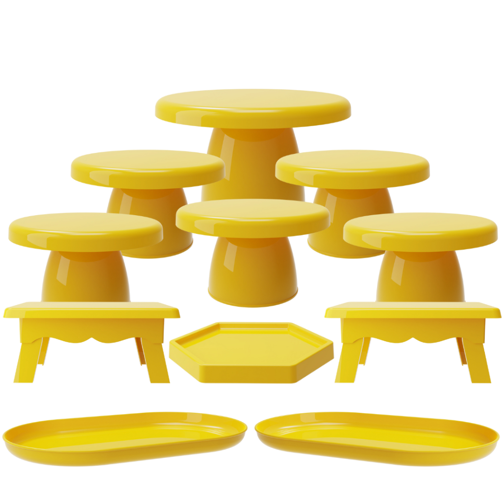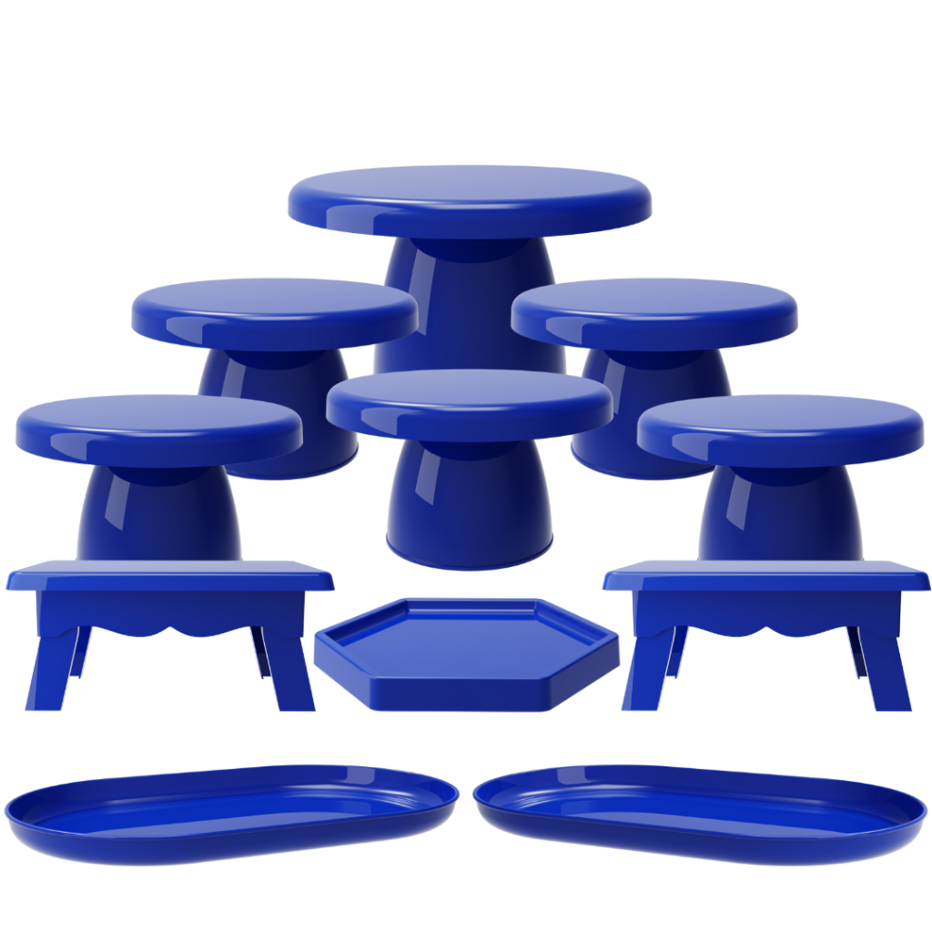 Kit Festa 1 Boleira Cake Popi, 5 Mini Cake, 2 Mesas, 1 Bandeja Sextavada 16 cm e 2 Bandejas Popi