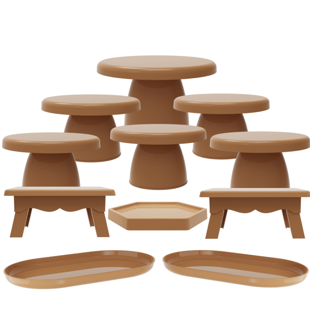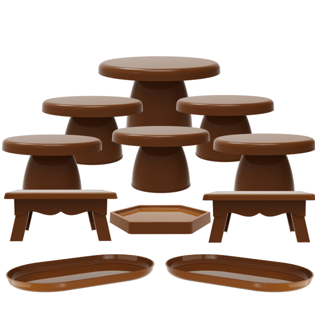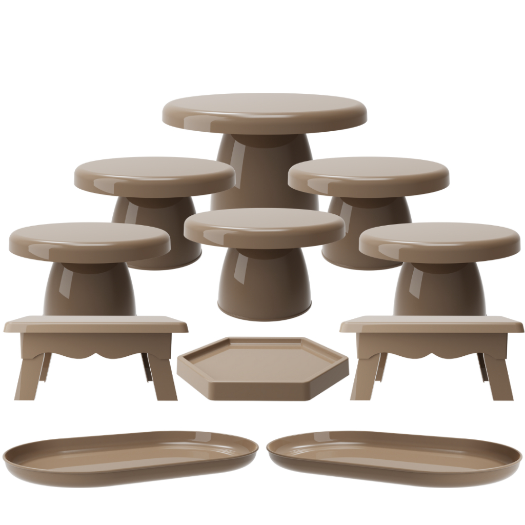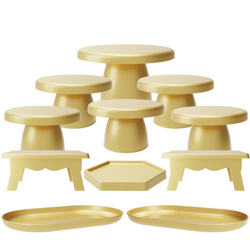 Kit Festa 1 Boleira Cake Popi, 5 Mini Cake, 2 Mesas, 1 Bandeja Sextavada 16 cm e 2 Bandejas Popi