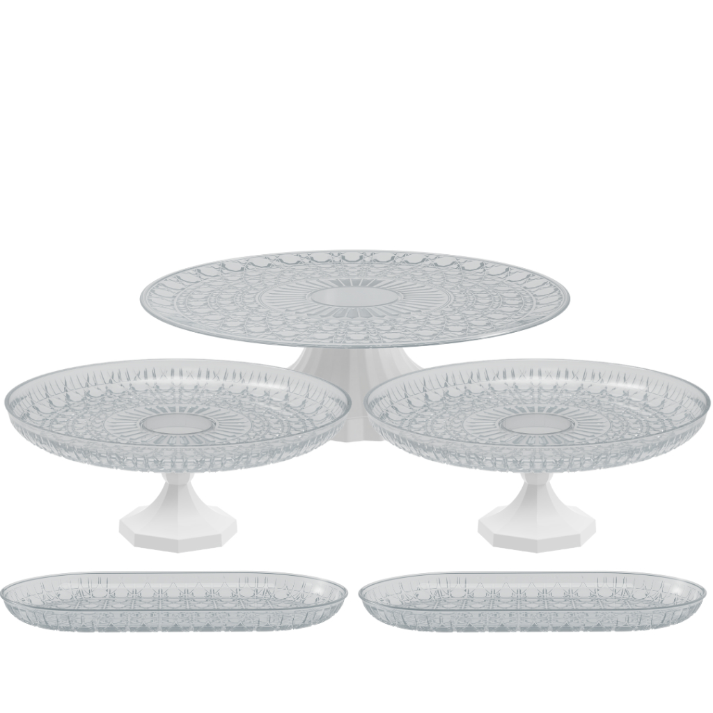 Kit Linha Lapidada com 1 Boleira lapidada 32 cm, 2 Boleiras Lapidadas 24 cm, 2 bandejas lapidada