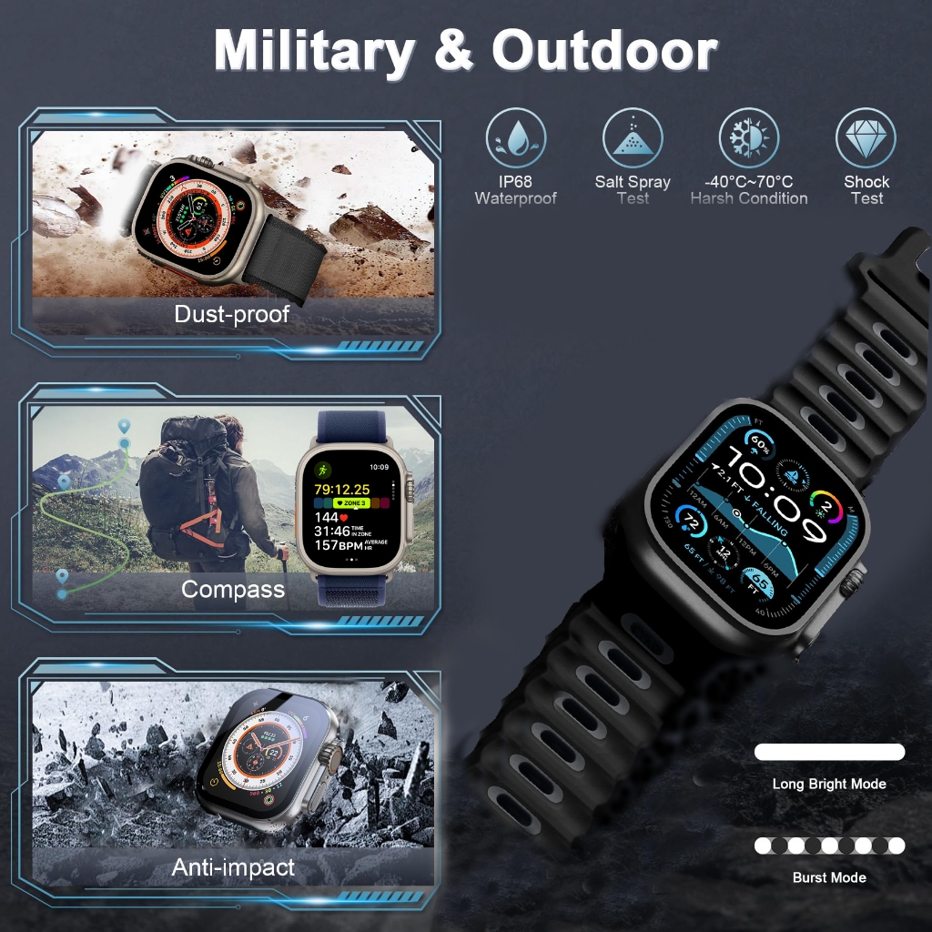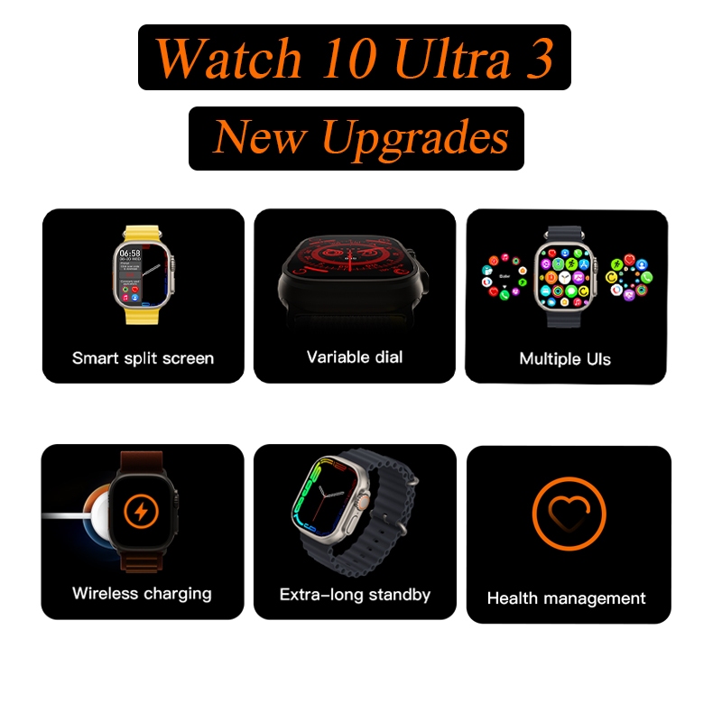 Relógio Inteligente Smartwatch Watch 10 Ultra 49mm com NFC + 3 Pulseiras, Chamada Bluetooth, Medição de Temperatura GPS