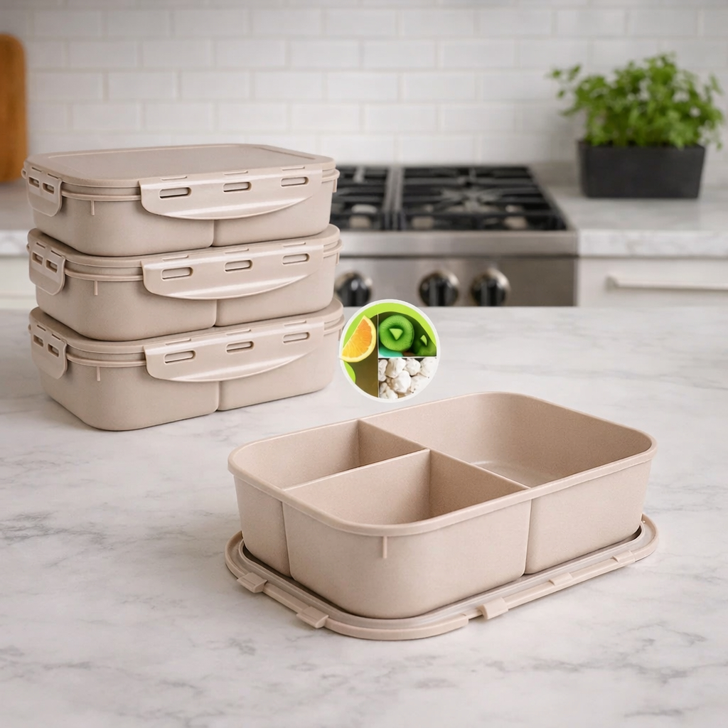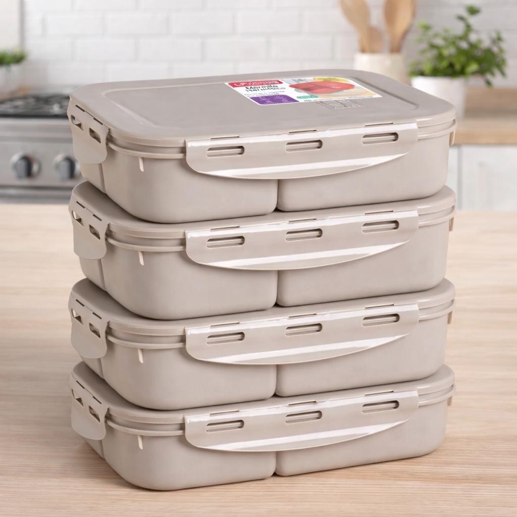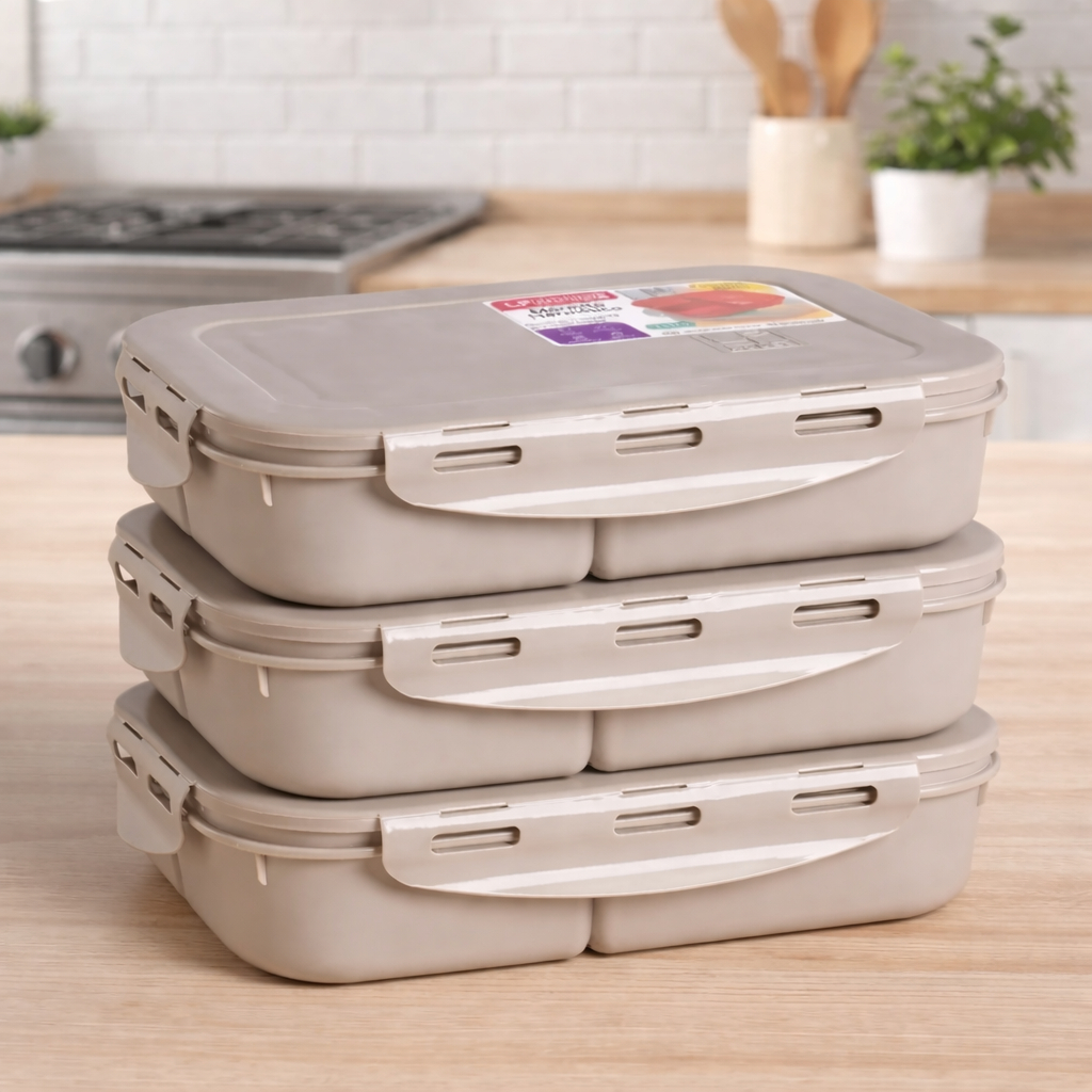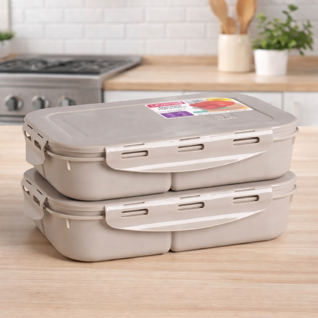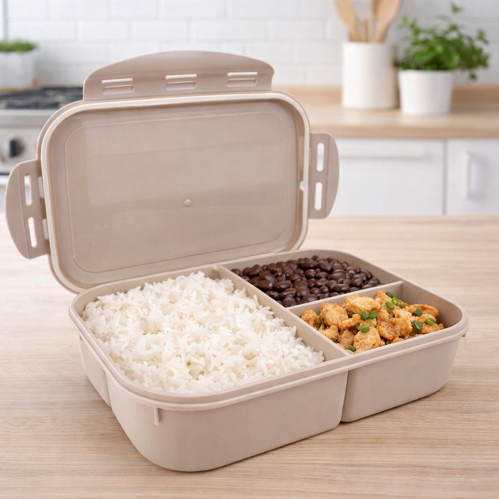 Kit Marmita Hermética Fitness 1L Divisórias para Microondas e Freezer Fendi Trava Silicone BPA Free