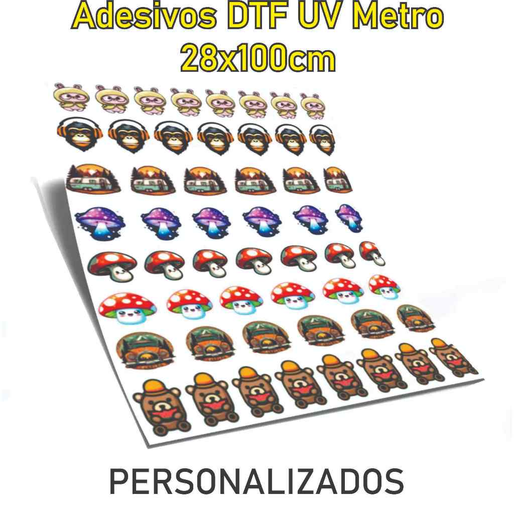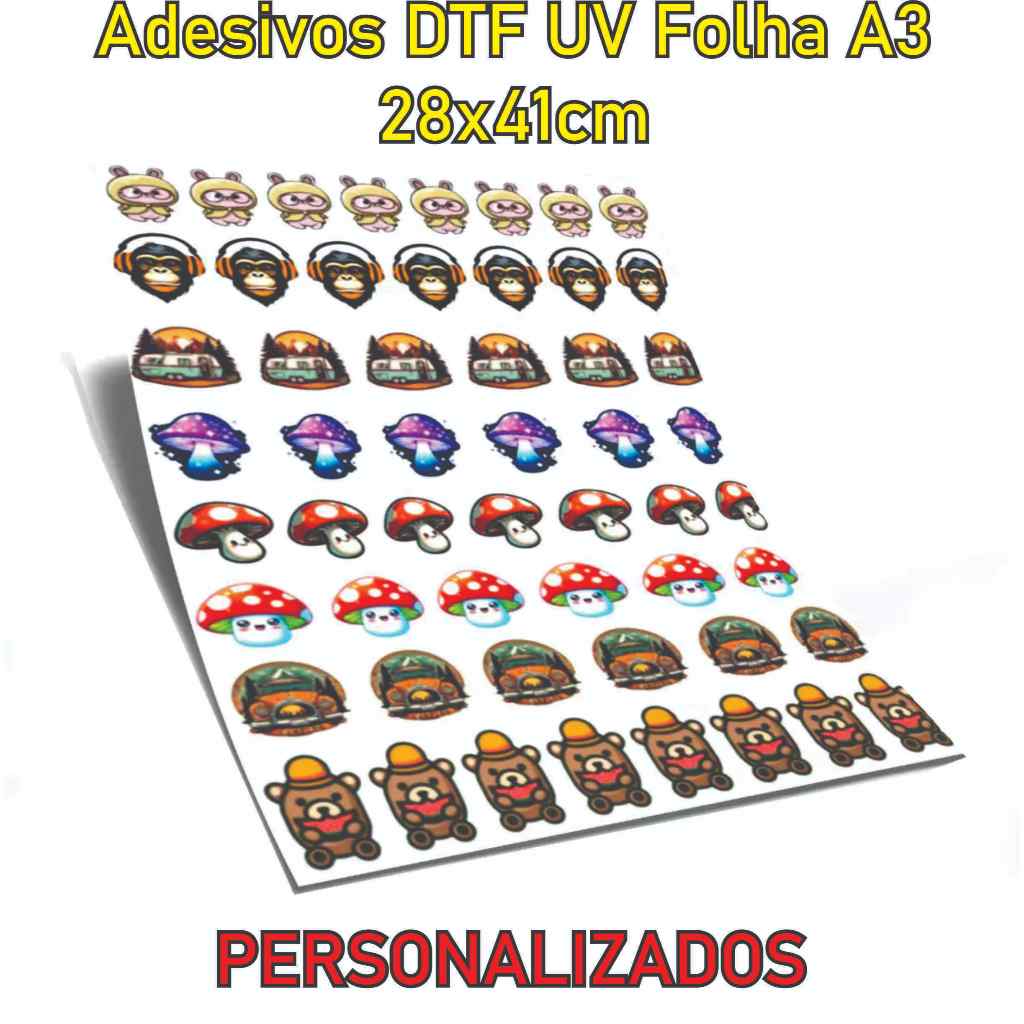 Adesivo Personalizado DTF Relevo Verniz - Folha A4, A3 e Metro DTF UV Envie sua imagem Personalizado