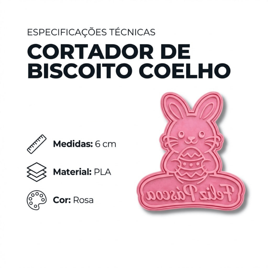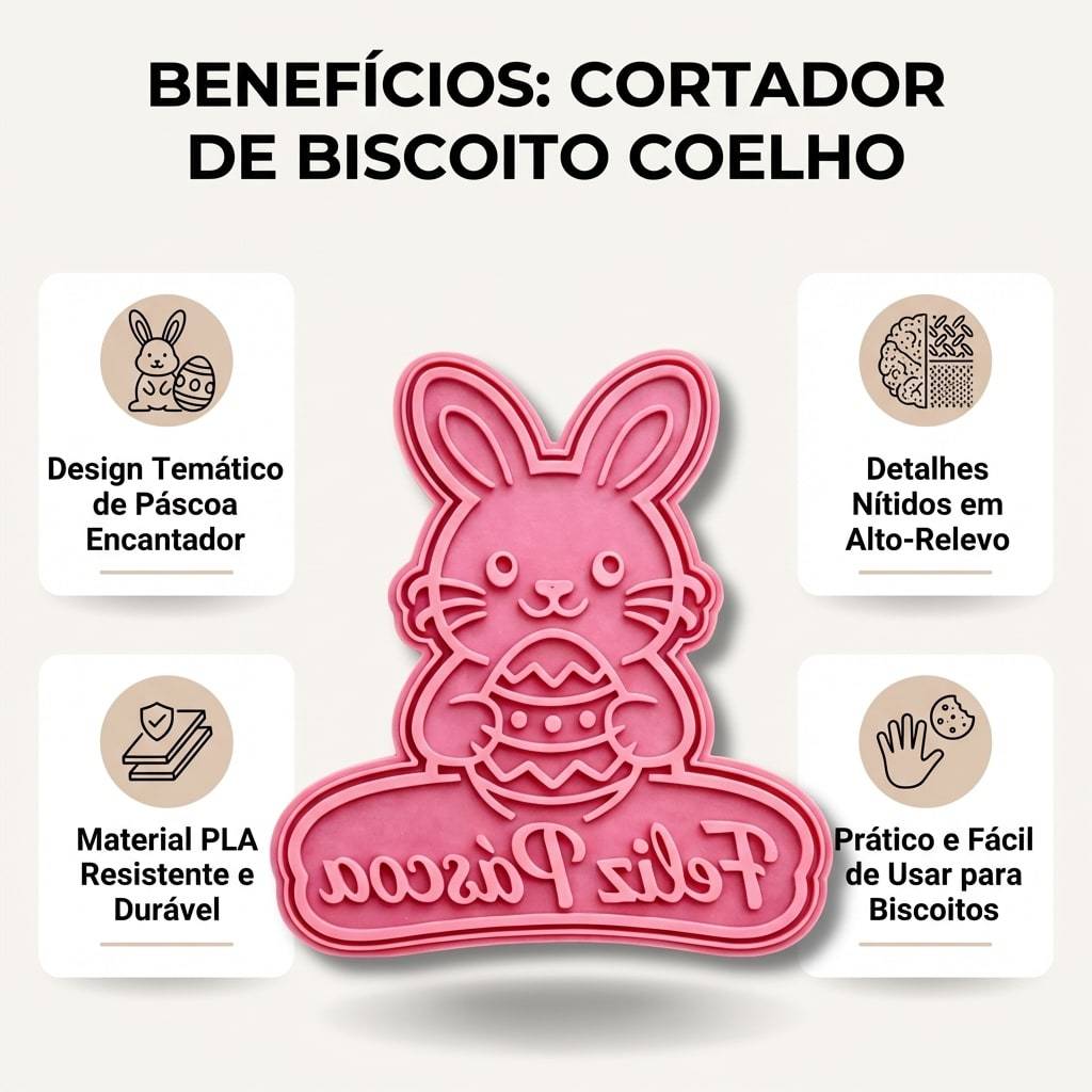 Cortador de Biscoito Feliz Páscoa Molde Coelho Marcador Carimbo Cookie Massa Biscuit