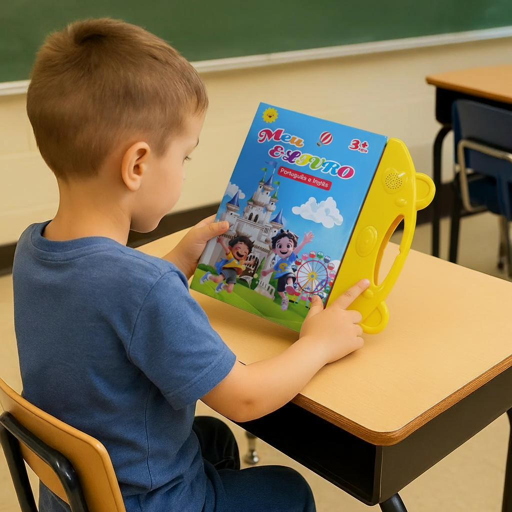 Livro Interativo Infantil Bilíngue com Som e Toque Multi Temas Educativo Português Inglês para Educação Infantil