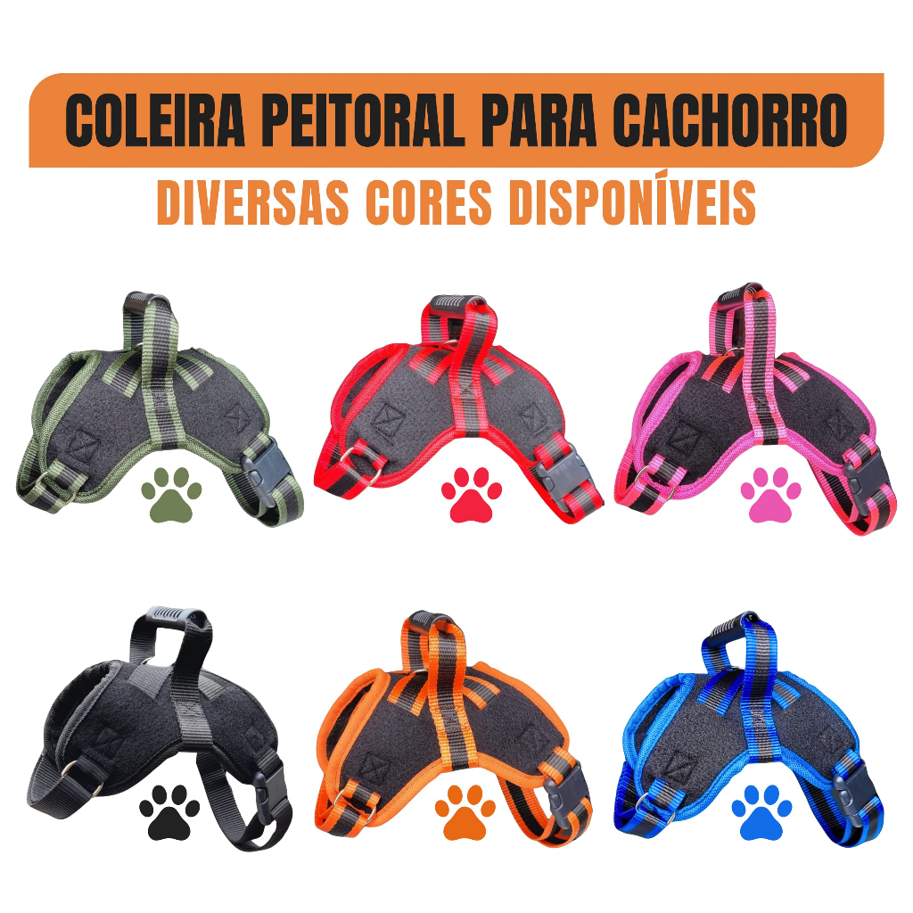Coleira e Guia para cachorro nome personalizado Peitoral pequeno médio grande porte super resistente